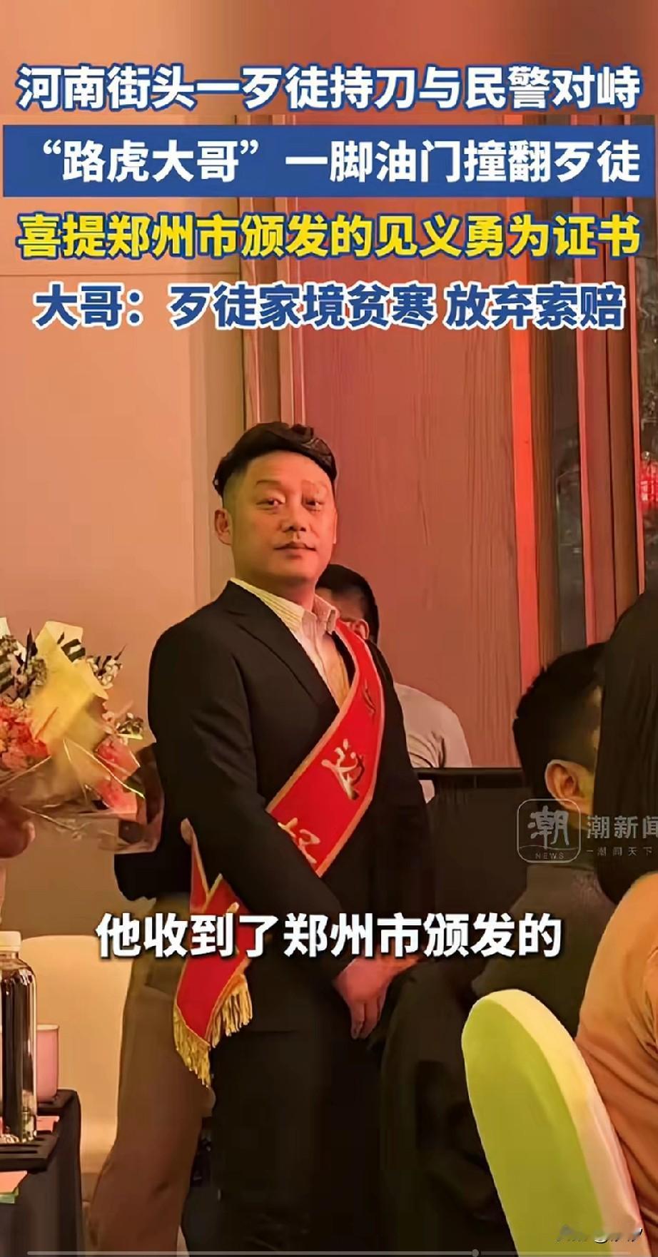 郑州街头发生了歹徒拿刀和民警对峙的画面,可以看出这是一个某烟草的公司, 歹徒手里拿着长刀,就在这个厂门口来回转悠,手里还拿着个皮包,说明叔叔围了起来, 并且还拿着刀叉防御,突然一辆路虎冲了出来,直接将歹徒撞倒在地!这就给叔叔抓捕歹徒营造了良好的时机! 叔叔们一拥而上,将歹徒拿下,路虎大哥这一撞真的见义勇为了,事后不仅不用承担任何责任,歹徒还需要赔他修车费! 考虑到歹徒家境贫寒,大哥放弃了修车费的索赔,还获得了郑州市颁发的建议见义勇为证书! 整条新闻也没有看到歹徒为何持刀,到底是什么原因逼的一个人在大过年的时候,持刀在街上和叔叔对峙? 还有这个大叔是从哪冒出来的?他的路虎车为什么会出现在中烟公司的门口,还是希望新闻报清楚事情的前因后果,不能只图一时的焦点! 大家觉得现在的新闻是不是都有这个特征?
