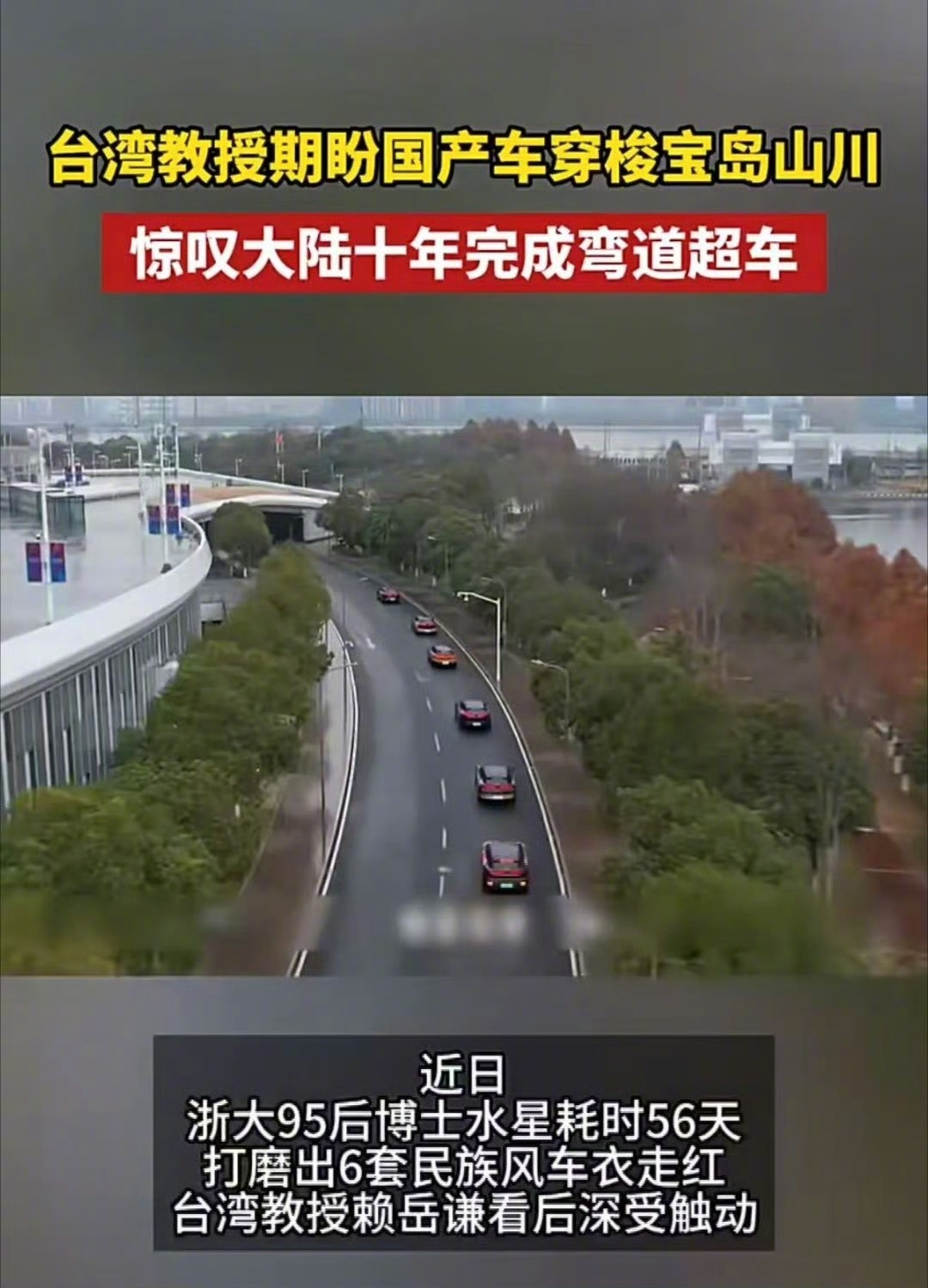 台湾教授惊叹大陆十年完成弯道超车,国产新能源确实是抓住了这一波契机,得益于提前布局,还有这几年的发展迅速,再加上逐渐走向海外,赢得广泛好评!期待国产新能源早日驶入台湾!台湾教授惊叹大陆十年完成弯道超车台湾教授称期盼国产车穿梭宝岛山川