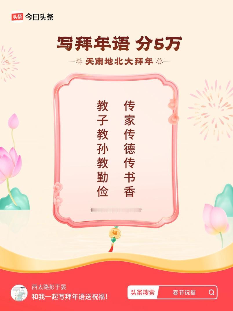 写拜年语送祝福新春拜年送祝福!我的祝福是:“教子教孙教勤俭,传家传德传书香”!快