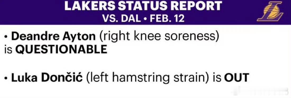 湖人这边——艾顿(右膝酸痛)出战成疑!东契奇(左腿筋拉伤)缺席!