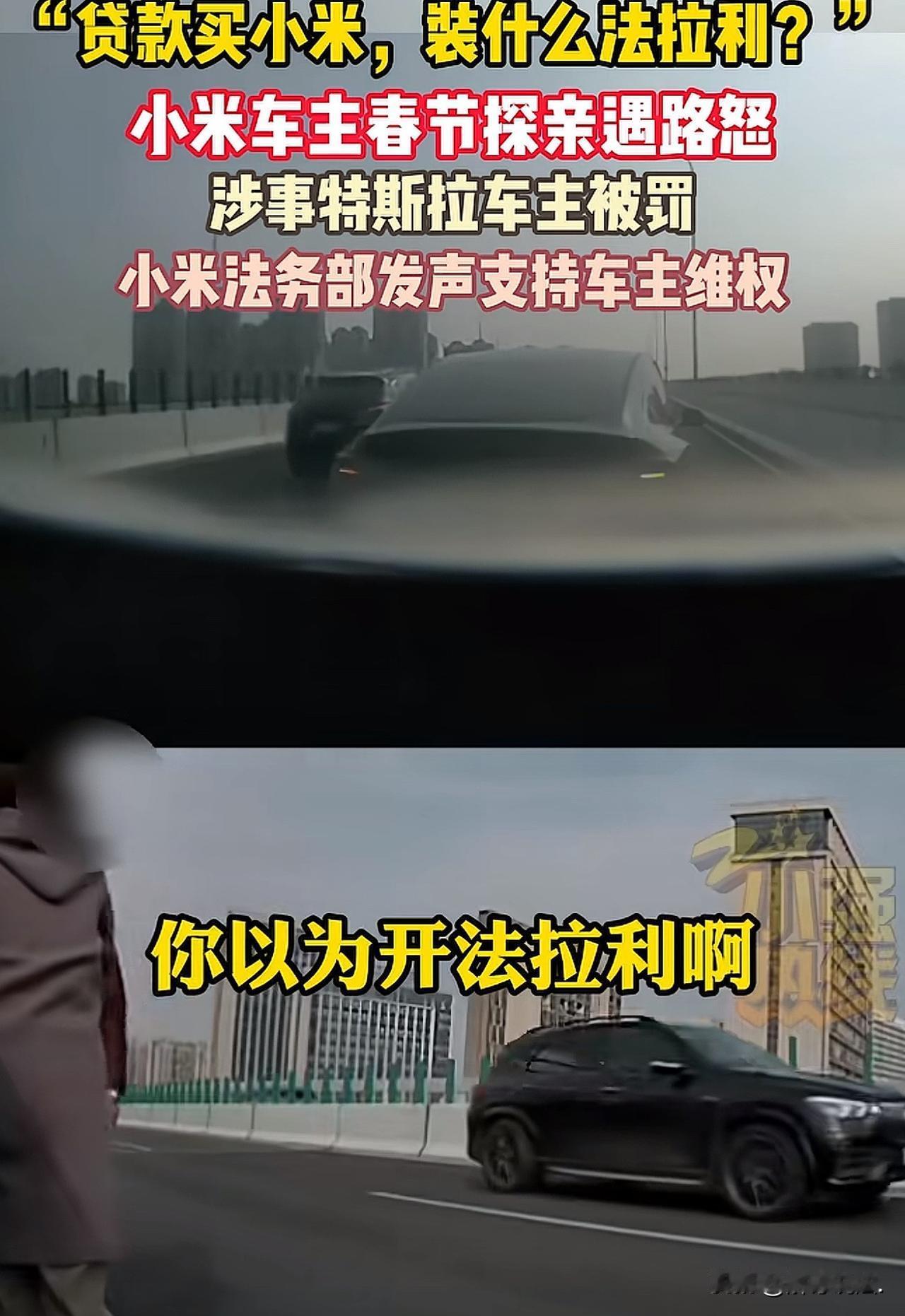 “实话扎心!”浙江宁波,男子驾驶一辆小米汽车正常行驶在路上,却被后方特斯拉司机恶意别车,突然急刹逼停。随后,又对男子骂骂咧咧,嘲讽说:掏空家底,贷款买了辆小米装什么法拉利?男子气愤不已,直接报警。警方对其处以记9分、罚款100元的行政处罚。小米法务部也公开站出来支持车主维权。涉事司机写下书面道歉信:向小米车主、车主母亲、车上宠物及小米品牌郑重道歉。 事情发生在春节前,这位小米车主本来是开车带着母亲,去奉化走亲戚送年货,一路上安安稳稳。 行驶到高架上时,他打了右转向灯准备正常变道,因为右侧车道有慢车,没办法立刻让开后车,就这一个违规操作,直接惹恼了后面一辆黑色特斯拉。 特斯拉司机明显情绪上头,多次想强行超车都没成功,之后就开始一路恶意挑衅:一会儿猛打方向别车,一会儿突然急刹逼停,嘴里还不停出言讥讽,说车主“贷款买小米,装什么法拉利”,话里话外全是看不起,不仅吓着了车上的母亲,也让车主特别委屈。 下了高架之后,车主没有跟对方斗气,而是第一时间保留证据报警。 最近浙江宁波发生了一件特别让人窝火的路怒事件:一位小米车主正常开车,竟被后方特斯拉司机恶意别车、急刹挑衅,还被当众嘲讽“贷款买小米装什么法拉利”。好在车主冷静报警,警方依法处罚,小米法务部也公开力挺车主维权,整件事既解气又引人深思。 春节前,这位小米车主驾车带着母亲,前往奉化探亲送年货。行驶到高架路段时,他打右转向灯准备正常变道,因右侧有慢车无法立即让行,这一违规操作,却惹怒了后方一辆黑色特斯拉。 特斯拉司机多次强行超车不成,情绪彻底上头,开始连续猛打方向恶意别车、突然急刹逼停,还出言辱骂、嘲讽车主。车上的母亲受到惊吓,车主既委屈又气愤,但始终没有斗气,而是安全下高架后保留证据、及时报警。 宁波海曙公安调查后认定,特斯拉司机恶意别车、危险驾驶,违反道路通行规定,依法对其作出记9分、罚款100元的行政处罚。涉事司机也写下书面道歉信,向小米车主、车主母亲、车上宠物及小米品牌郑重道歉。 2月11日,小米法务部正式发声,明确支持车主维护自身合法权益,提醒大家遇到类似侵权要勇敢维权,同时呼吁春节出行文明驾驶、拒绝路怒。 《道路交通安全法》第90条规定:机动车驾驶人违反道路交通安全法律、法规关于道路通行规定的,处警告或者二十元以上二百元以下罚款。 宁波海曙公安很快介入调查,根据行车记录和现场证据,认定特斯拉司机恶意别车、危险驾驶,依法对他做出了记9分、罚款100元的处罚,还严肃批评教育。 这位司机也认识到错误,写下了书面道歉信,专门向小米车主、车主母亲,甚至连车主车上的宠物和小米品牌都郑重道歉。 2月11日,小米法务部专门为此事发声,明确表示支持车主维护自身合法权益,还提醒所有车主,不管是线上被攻击还是线下遇到类似侵权,都可以通过官方渠道提交证据, 小米法务部会持续帮忙维权,坚决守护用户和品牌的合法权益,同时也劝大家春节出行别路怒,平安回家最重要。 评论区,网友炸锅了:还以为是啥豪车呢,不过也就是个特斯拉。好像是一起蹲在路边吃盒饭,吃炒蒜苔的嘲讽吃炒西红柿的。都一个阶级,还要看不起人。这人的人性太拉胯了! 车是无辜的,是人的素质问题,不是谁谁的车不好是人不好! 虽然我的车不是特斯拉 但我觉得特斯拉车主说的没毛病! 个人认为:开个车还开出优越感,实在没必要。 大家都是普通车主,正常变道、礼让通行是基本规矩,恶意别车、急刹挑衅,已经不是脾气问题,是拿道路安全当儿戏。 车型从来不该成为嘲讽别人的理由,车是代步的,不是用来攀比的。真正有格局的人,比的是素质和安全,不是车标。嘴上不饶人、路上耍威风,最后丢的不是品牌的脸,是自己的脸。 也希望大家春节开车都心平气和,道路宽不如心宽,平安比什么都重要。