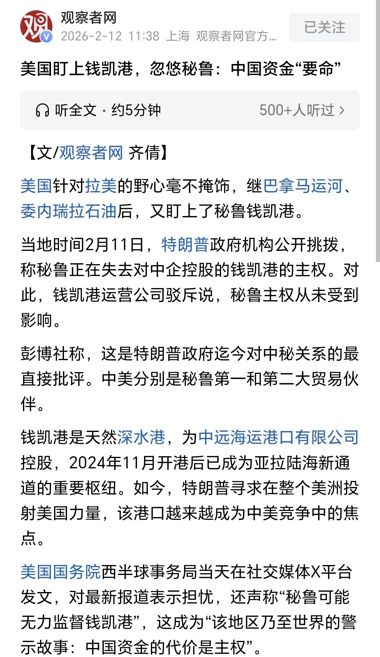 澳洲达尔文港、美洲巴拿马港口、秘鲁钱凯港……中国的全球外贸物流运输路线节点正在面临被美国为代表的西方国家切断的风险。知道在制造业、商业贸易和关税上难以打败中国,就瞄准了全球范围的物流港口这类贸易运输关键节点下手。或明或暗,要么煽风点火、要么就扶植棋子冲锋。在全球范围给中国找麻烦。 说到底还是当地政府觉得中国是君子可欺之以方,中国秉持不开第一枪的原则,航母编队不会真的朝那些国家地区动手,所以才有恃无恐的跟着美国走、即使出事了大不了换个政府上台再对华友好,中国也不会真的打到他们家门口。 达尔文港口风波 中资港口 关税自由贸易港 中美关系你怎么看待 中美关系 中美贸易摩擦