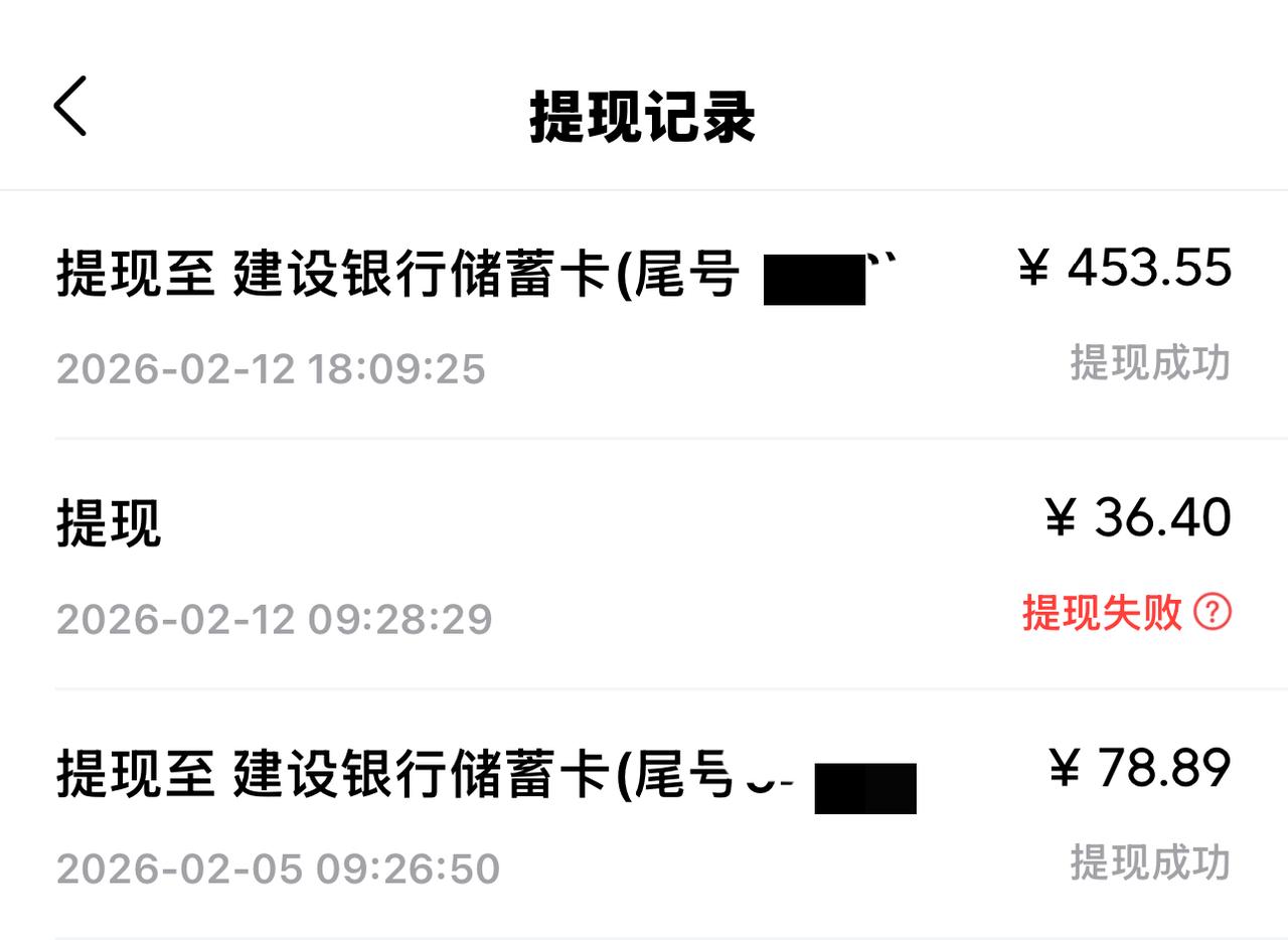 2026年的第一个等级奖终于到账,虽然只有100元,但也实属不易。 今天是2月的第二个提现日,我提现了453元,你呢?提现了多少? 说到提现,今天发生了一件匪夷所思的事:上午9:30,我和平时的提现日一样,正常提现,但到了下午我准备二次提现的时候,我才发现上午提现居然没成功,一看提示,居然是没完成提现流程,也真是醉了,估计是网络卡顿的原因,下次一定要注意了,毕竟落袋为安。