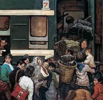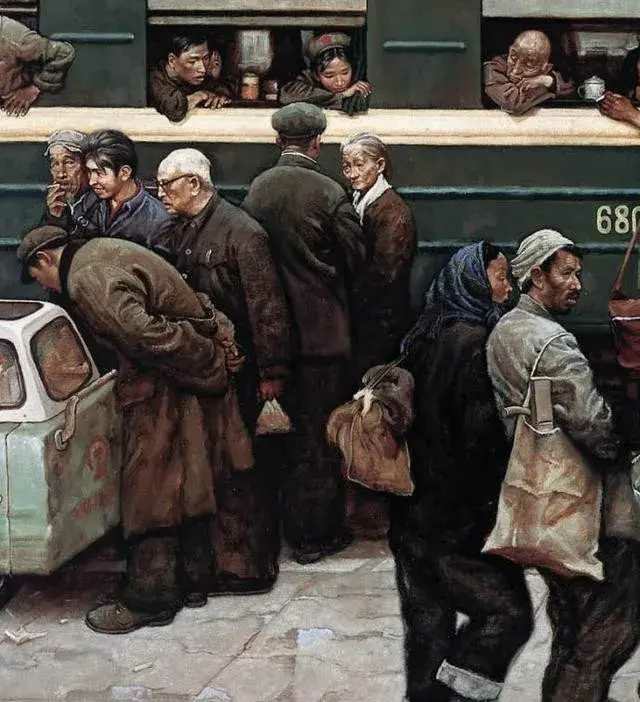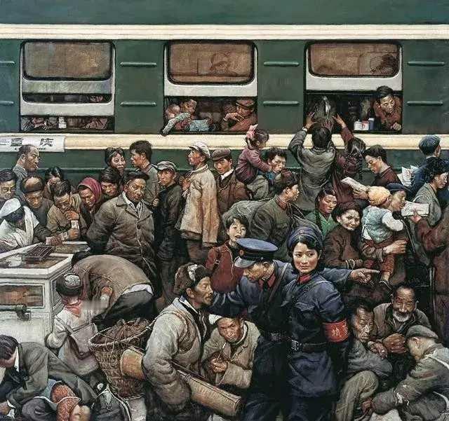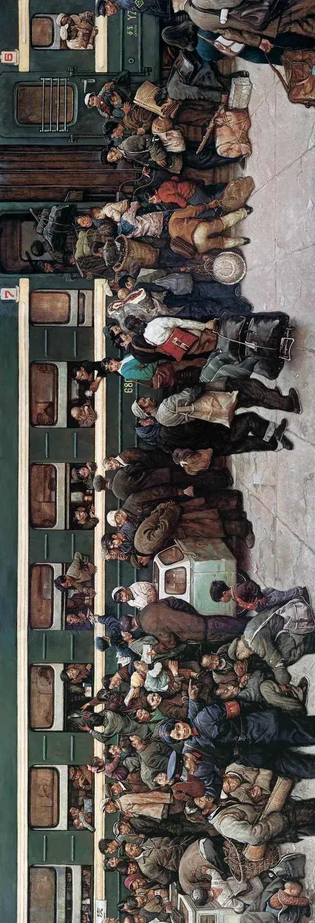 这幅画长4.5米,高1.4米,以全景式的构图描绘了80年代形形色色的中国人民赶火车时的场景——车窗里向外探视的乘客,车门口拥堵着上车的人们......这种真实而具有浓厚时代感的场面,极具震撼力。画中没有尖锐的冲突和戏剧化的情节,也不以人物形象的塑造为重点。作者所关注的仍然是当时普通人的日常生活状态,没有“主要人物”,没有“中心情节”,既不是赞颂,也不是挖苦,当年我们就是如此这般地生活着。也许由于过于真实,当时不曾产生震撼或者激动,而在过去了二十几年之后再看这幅画,我们不能不被毫不造作的真实所震撼。当年的“杂乱”、“含糊”,已经凝聚为明晰的历史性叙述。他已经成为一个时代的缩影。作为那个时代走过来的普通中国人,《赶火车》在表现八十年代初期中国普通人的精神状态和社会气氛方面,堪称无出其右。遇见艺术这就是中国风