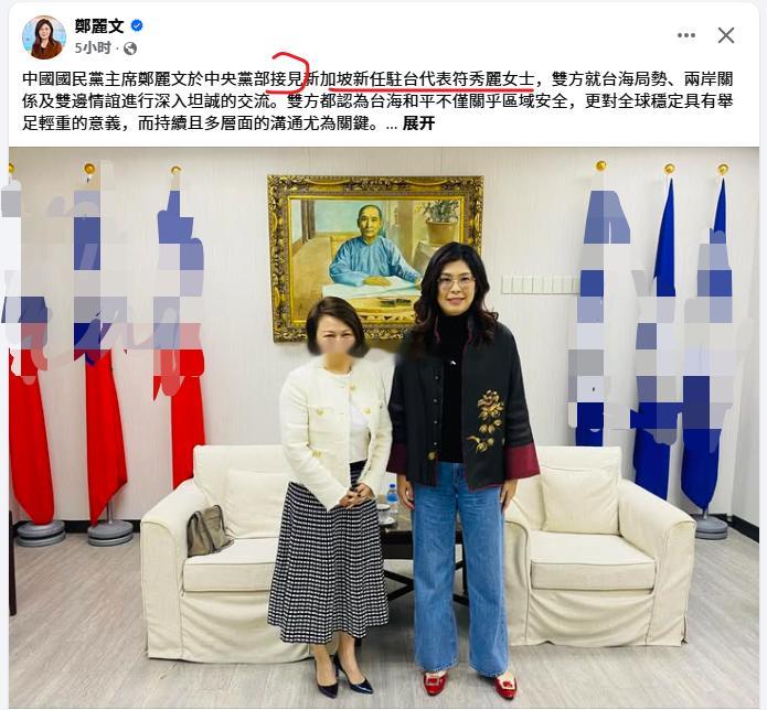郑丽文:我接见了新加坡驻台代表热点现场