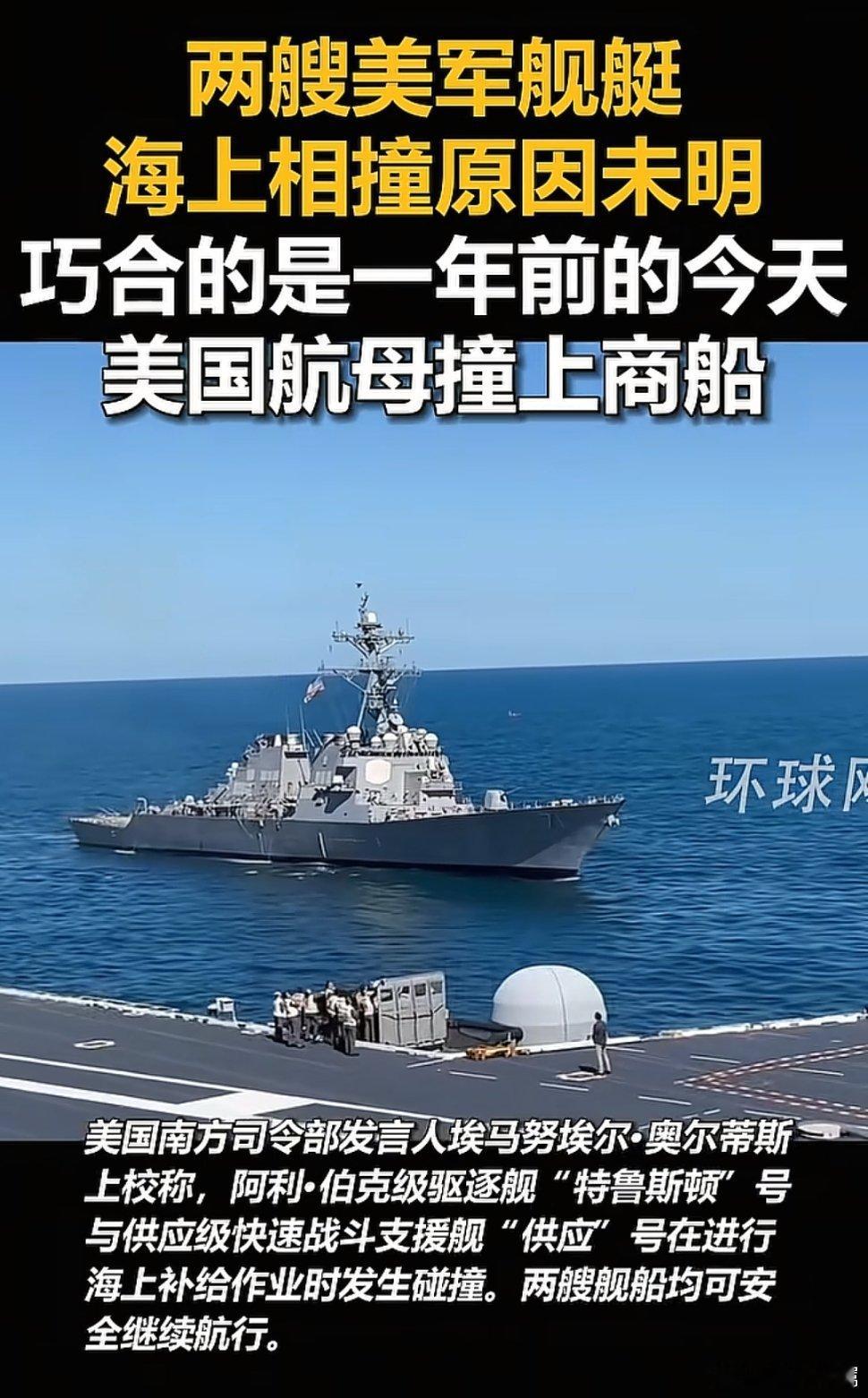 驱逐舰+补给舰贴贴失败,2人轻伤,船还能开,原因正在调查。