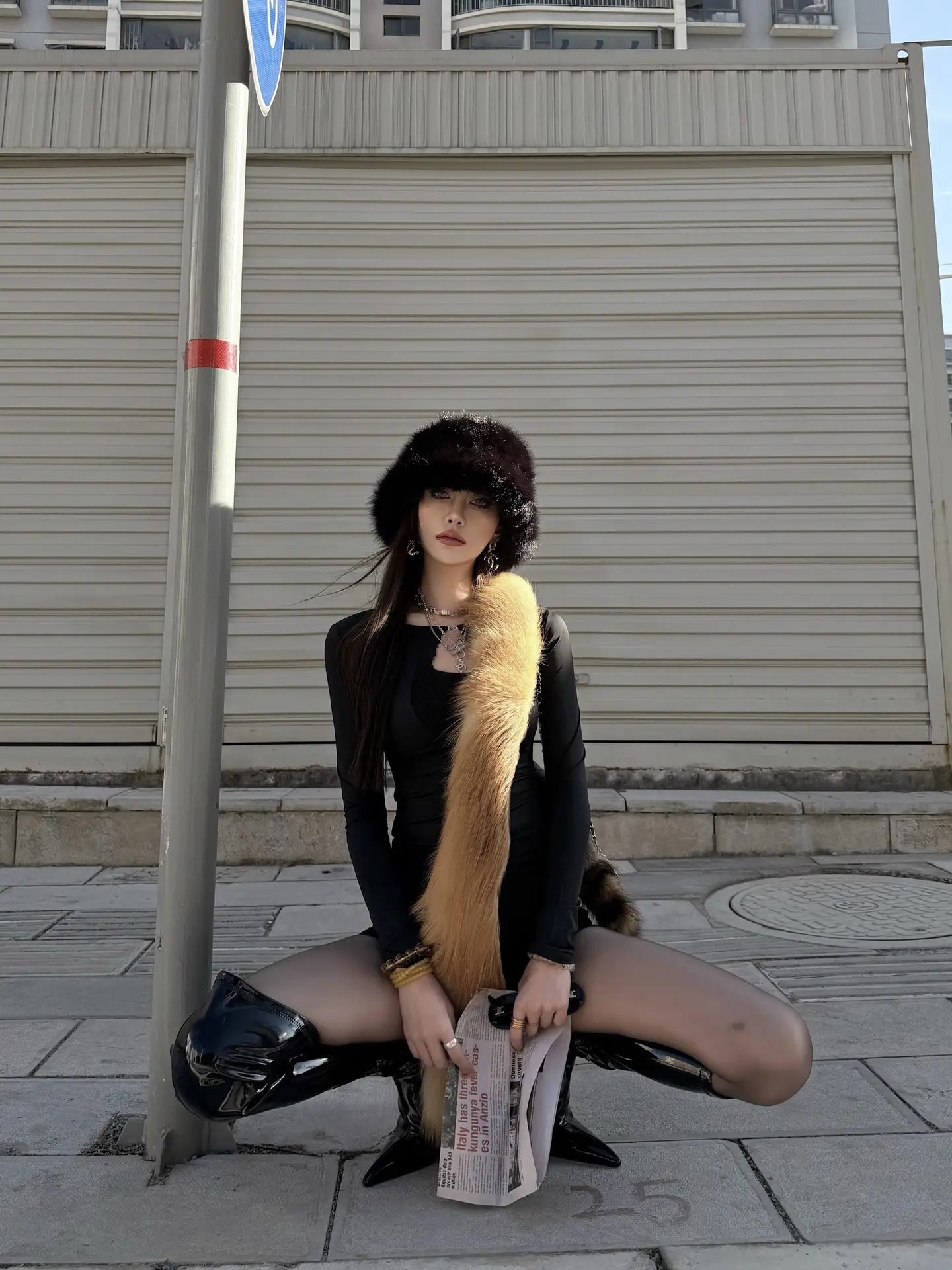 这套穿搭把“贵气感”和“复古氛围”融合得超绝!灰调毛绒外套自带高级质感,黑内搭+