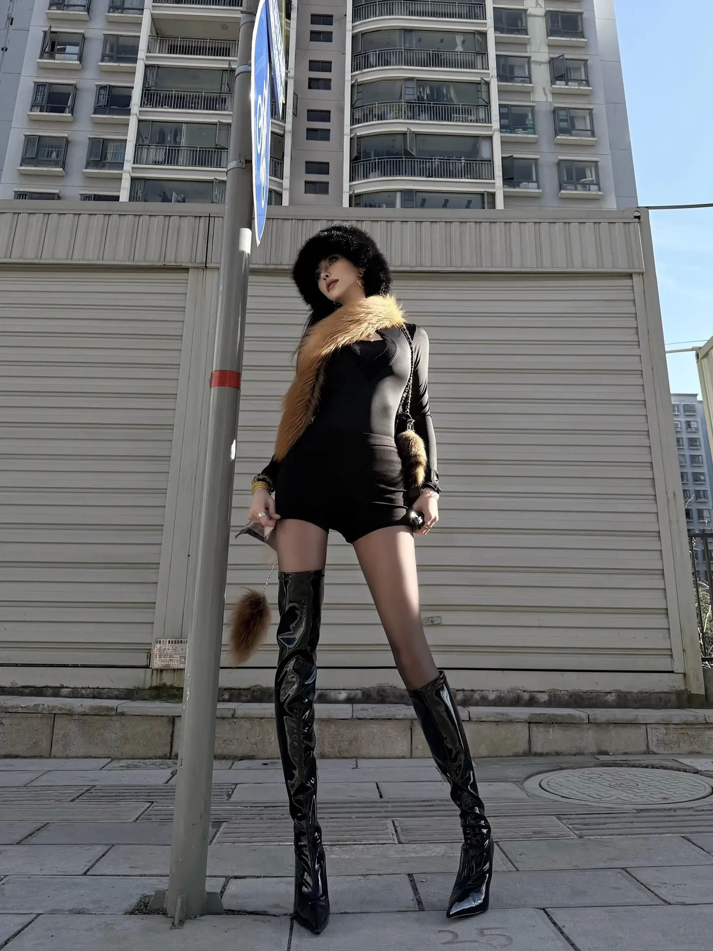 白色毛绒外套+牛仔裤+长靴,轻松驾驭都市时尚!👗👠💃