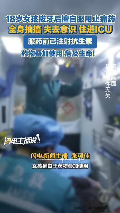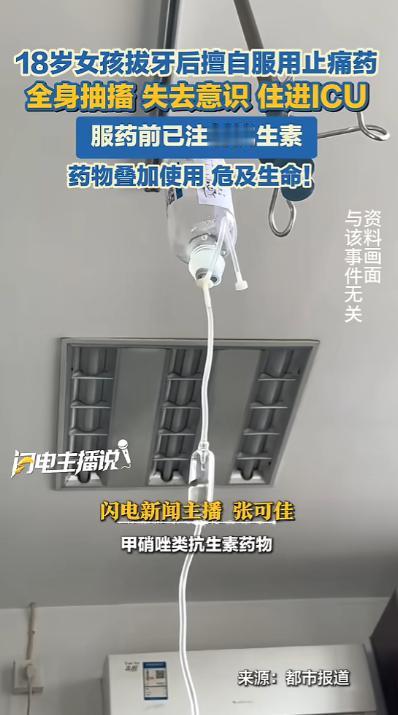 “太吓人了!”近日,一女孩拔牙后,注射了克林霉素,甲硝唑类抗生素药物杀菌消炎,但回家之后还是觉得牙疼,她的爸爸就给了她吃了一颗止疼药,没想到女孩吃完之后就开始抽搐,失去了意识,差点危及生命!网友:还敢乱用药吗? 据媒体报道和医院官方信息,这名女孩拔牙后,诊所医生为了帮她杀菌消炎,给她注射了克林霉素、甲硝唑类的抗生素药物,之后女孩就回了家。 可回家没过多久,麻药的效果退了,女孩还是觉得牙疼得厉害,一直喊不舒服。 她的爸爸看在眼里,急在心里,没多想就给了她一颗止疼药,想着能帮她缓解一下疼痛,毕竟在很多人看来,牙疼吃颗止疼药是很平常的事,可没人能想到,就是这一颗看似普通的止疼药,差点夺走女孩的生命。 女孩吃完药还不到一个小时,就出现了异常反应,一开始是觉得恶心,紧接着就开始剧烈呕吐,之后浑身僵直,四肢不停抽搐,没过一会儿就失去了意识,整个人陷入了昏迷状态。 家人被这突如其来的变故吓得手足无措,赶紧拨打了120急救电话,把女孩紧急送往医院抢救。 接诊的医生经过检查,很快查明了女孩昏迷抽搐的原因,医生介绍,女孩出现的是低钾低钙性抽搐,还合并了呼吸性碱中毒,情况非常危急。 其实问题不在于止疼药本身,也不在于之前注射的抗生素,关键是这几种药物叠加使用,引发了严重的副作用。 克林霉素和甲硝唑这类抗生素,本身就可能对肠胃产生刺激,而女孩吃的止疼药,也有刺激肠胃的副作用,两种药物叠加在一起,对女孩的肠胃造成了双重刺激,引发了剧烈呕吐。 剧烈的呕吐让女孩体内的钾、钙等重要物质大量流失,这些物质是维持身体正常运转的关键,流失过多就会导致抽搐、意识丧失,严重的话还会引发心脏骤停,危及生命。 医生还特别说明,拔牙后出现疼痛、肿胀,其实是正常的术后反应,不一定非要吃药。 最简单安全的缓解方法,是在拔牙后24小时内,用毛巾包裹冰袋,间断性地敷在拔牙一侧的脸颊上,既能止痛,又能减轻肿胀。 如果疼痛实在难以忍受,也必须先咨询医生,在医生指导下用药,绝对不能自己随便加药、混用药。 经过医院的紧急抢救,女孩的病情逐渐稳定,慢慢脱离了生命危险,目前已经在逐步恢复中。 这件事传到网上后,引发了网友们的广泛讨论,不少网友留言感叹“还敢乱用药吗?”, 还有很多网友分享自己的经历,提醒身边人,用药千万不能大意,尤其是多种药物一起使用时,一定要遵医嘱,不能凭自己的经验随便吃,不然很可能酿成无法挽回的后果。 以上都是个人观点,对此您有什么不同的看法,可以在评论区留言讨论!!!