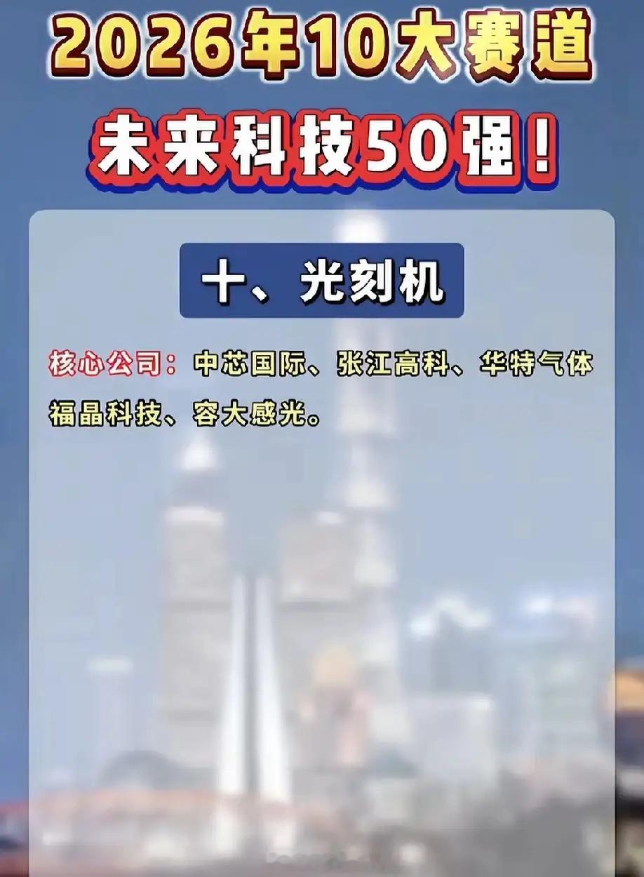 2026年未来科技10大赛道龙头名单曝光!从人形机器人到光刻机,从AI算力到可控