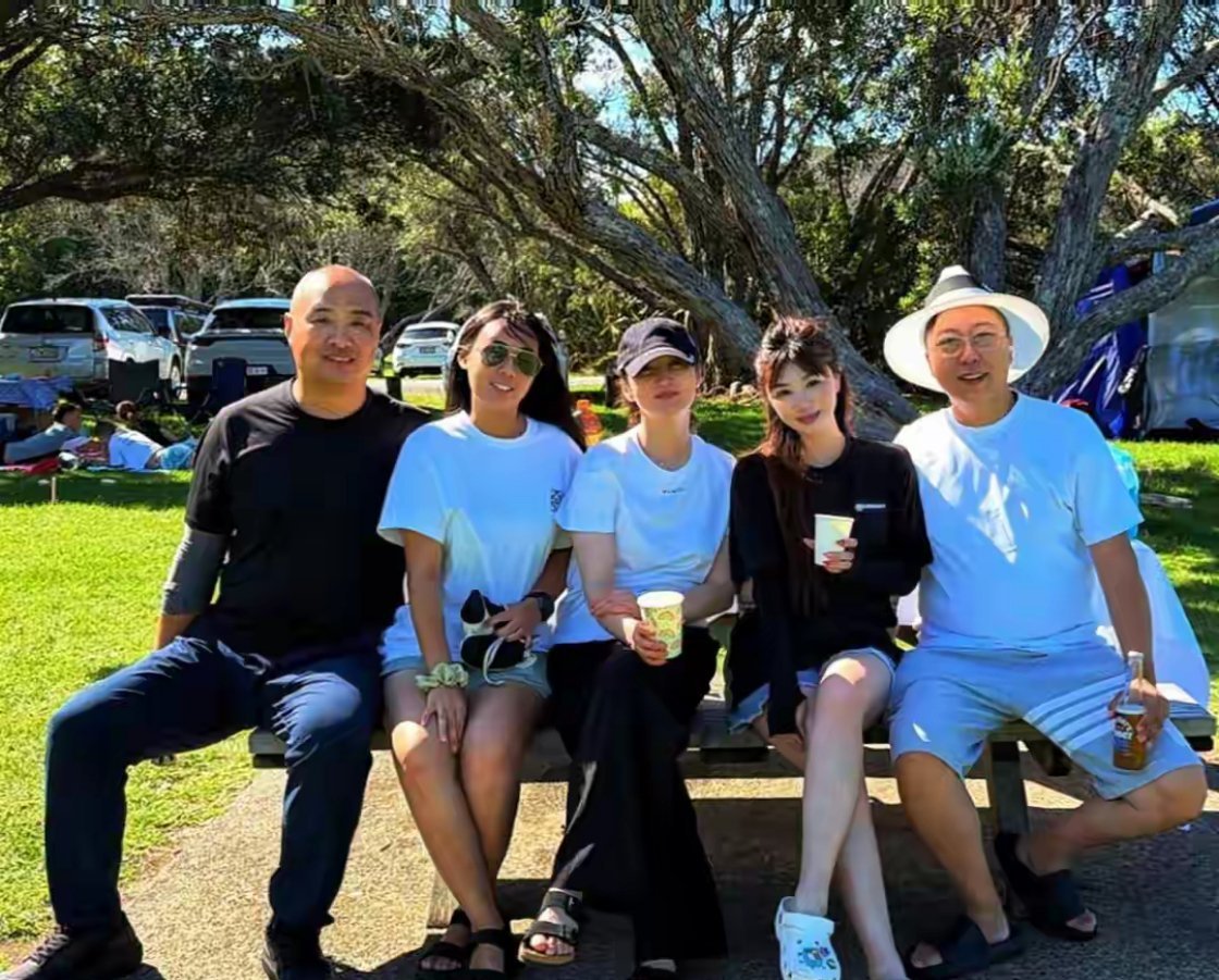 50岁蒋勤勤在新西兰和朋友到公园野餐吃烧烤,状态看起来太好了
