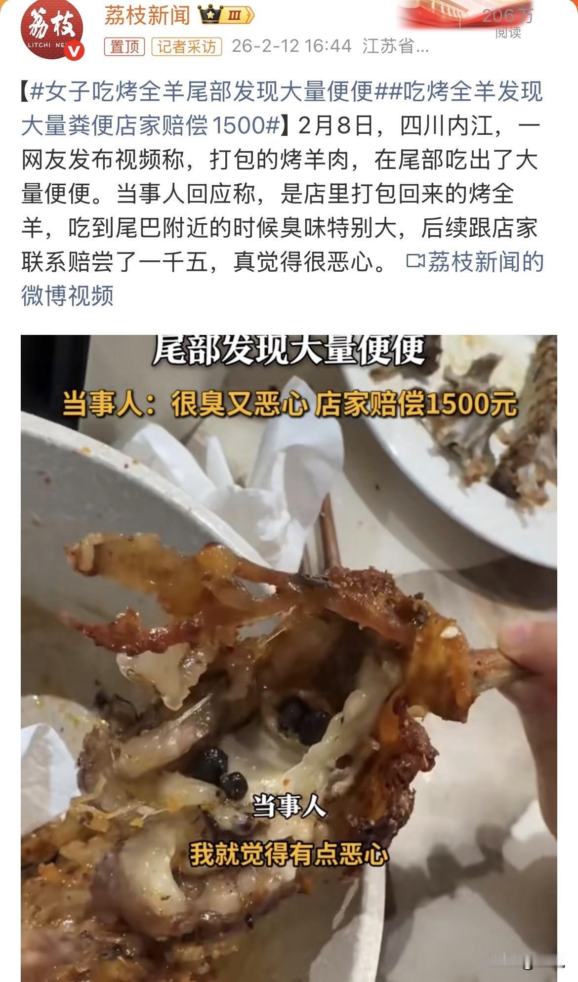 我真服了,四川内江那个女的,羊尾巴上那层东西,不是第二天才发现。 她是当天晚上,坐在店里,和家人一起吃第一顿的时候,就已经吃到尾巴那块了。 只是那时候人多,一人撕一块,说说笑笑,谁都没往那方面想。 第二天中午,她一个人在家,把昨晚打包的羊肉从冰箱里拿出来,微波炉转了三分钟。她姐不在,孩子上学,屋里就她自己。她端着盘子坐沙发上,一边刷手机一边嚼。 第一口没事。第二口有点怪。第三口,那股臭味压不住了。 她停下来,把手里那块肉翻过来看。 羊尾巴是整只羊最油的地方,烤透了应该是焦黄的脆皮。可她手里这块,尾巴根那个褶皱里,糊着一层东西。不是黑,不是焦,是绿褐色,黏在皮上,有的地方干成硬痂,有的地方还是软的。 她把肉凑近鼻子,那股味直接冲进喉咙。 她说后来想起来,其实昨晚吃的时候就有味儿。只是大家围坐在一起,炭火烤着,辣椒孜然撒着,谁会把嘴里的肉翻过来看一眼。 打包的时候,她特意说把剩下的都装上,别浪费。服务员拿了个大圆盒子,连羊架子带尾巴全塞进去,盖好盖子,她还说了声谢谢。 那声谢谢,她后来想起来,特别堵。 视频是她姐让拍的。她姐第二天下午过来,听她说完,脸当场就沉了。她姐没骂她,没问她为什么不早点发现,直接掏出手机,对着那盘羊拍了小一分钟。 镜头从远推到近,盘子边缘还粘着烤焦的辣椒碎,羊肉已经凉透了,油脂凝成白霜。她姐把尾巴那截单独扯出来,翻了个面。那一层东西,在镜头底下清清楚楚,和周围烤成金黄色的皮完全是两个颜色。 她姐直接打电话给店家。 电话那头是个男的,听完没挂,也没反问“是不是你们自己放的”。沉默了两三秒,说,我们核实一下。 二十分钟后回过来,没解释是哪个环节出的问题,也没说是谁洗的羊谁烤的羊。直接问,你们想怎么解决。 她姐说按食品安全法来。对方又沉默了一下,说,赔一千五行不行。 她姐没再争。 这女的后来发视频,配文就一句话:真觉得很恶心。 没点名,没曝光店名,没喊话监管部门。一千五到账,她把记录截图发家人群,说这事算了。 但评论区有人算了一笔账。 《食品安全法》第一百四十八条写得很清楚:生产不符合食品安全标准的食品,消费者除要求赔偿损失外,还可以向生产者或者经营者要求支付价款十倍或者损失三倍的赔偿金;增加赔偿的金额不足一千元的,为一千元。 她这顿饭吃了多少钱,没说。但烤全羊在四川内江,中等馆子一只大概五六百。十倍是多少,五千到六千。 她拿了一千五。 是餐费的三倍,不是价款的十倍。 法律规定的“退一赔三”适用于经营者欺诈,而“退一赔十”针对的是食品本身不安全。她这事儿属于后者。 她没去争那五千块。 有人说她太好说话。她回了一句,不想为这点钱折腾几个月。 这句话其实比那只羊尾巴更让人堵。 不是不想争,是不敢把时间搭进去。要留证据,要投诉,要等调解,可能还要上庭。为一只羊,耗不起。 店家显然也懂这个。 所以二十分钟回电话,不解释,不道歉,直接报了个数字。一千五,比这顿饭贵,但比法律规定的少。卡在一个让人不想再折腾的刻度上。 这女的后来把视频删了。 不是被公关了,是她自己删的。说看一次恶心一次,不想再看到那盘羊。 但网上已经传开了。荔枝新闻、点时新闻都报了,标题写着“四川内江”“烤全羊尾部”“大量粪便”“赔偿1500”。 有网友翻出重庆那几家烤全羊店,去年被博主打假,说60斤的活羊,上秤只有30多斤,最后店家退一赔三,停业整顿。 还有人说南京那家,一氧化碳中毒,法院判赔两万八。 同样是羊,有的是缺斤少两,有的是煤气中毒,有的是尾巴没洗干净。 缺斤少两是故意。一氧化碳是无知。尾巴没洗干净,算什么。 算疏忽吗。 可是洗羊的人,一天要洗几十只。每一只都要翻开尾巴看一眼吗。 没人知道那家店后厨什么样。有没有专门洗羊的水池,洗羊的人戴不戴手套,洗完是不是有人检查。 只知道那一千五,从店家账上划到女的微信里,全程没超过一小时。 处理速度比洗一只羊快多了。 洗一只羊,要冲水,要刷皮,要把褶皱掰开冲干净。一只羊少说三五分钟。 赔一千五,只用二十分钟。 这女的后来接受采访时说,她发视频不是想要钱,是提醒大家。 提醒什么呢。 提醒以后吃烤全羊,尾巴那块要翻过来看一眼。 这句话从受害者嘴里说出来,总觉得哪儿不对。 应该是店家提醒自己,以后尾巴要洗干净。 但店家什么都没说。没公开道歉,没说整改措施,没开掉当天洗羊的人。 那洗羊的人,明天还站在水池边。水龙头拧开,高压水枪对着羊皮冲。他会不会想起有一只羊,尾巴没洗干净,让老板赔了一千五。 没人知道。 这女的昨晚发了一条新动态,不是羊的事。是带她妈去配助听器,跑了两家店,价格差三千。 底下有人评论,姐,你还敢在外面吃羊肉吗。 她回了一个表情,捂脸笑。 没说话。 你觉得呢,这种事赔一千五,够不够。