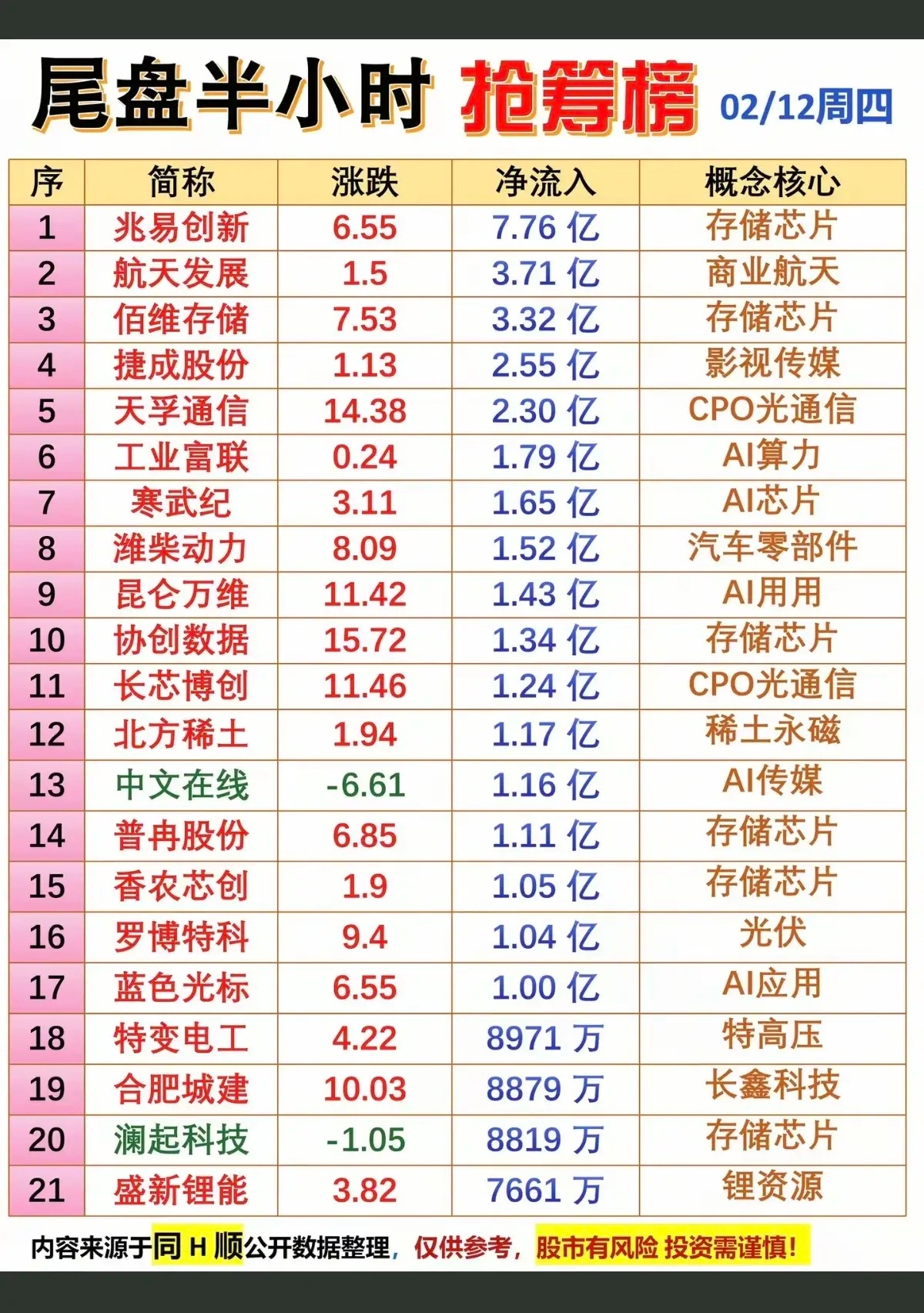 2.12周四 尾盘半小时 资金抢筹个股榜!