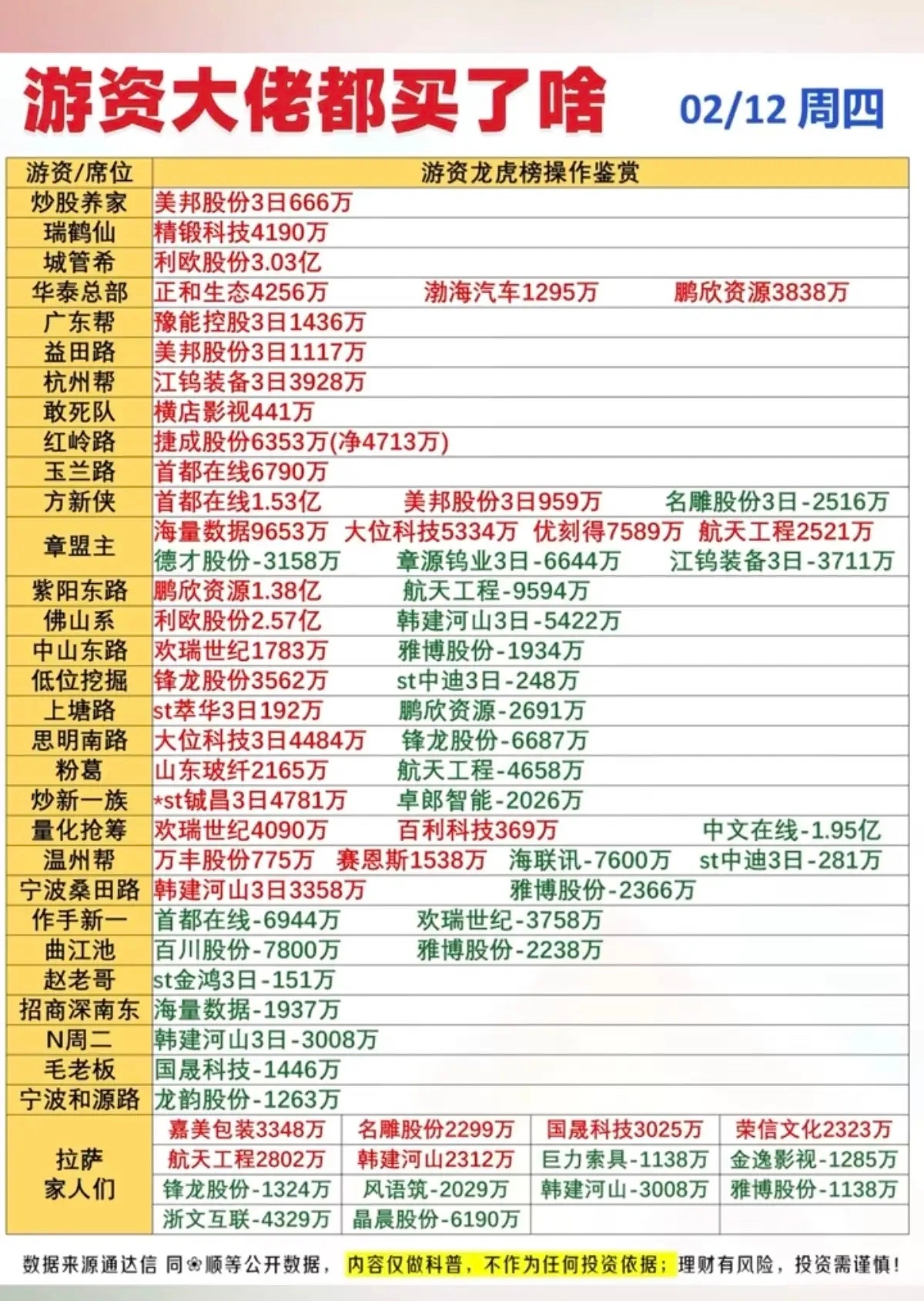 2.12周四 游资抢筹 龙虎榜 !看看游资大佬们都买了啥股票?!