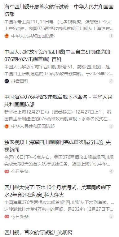中国军工现在让外界最紧张的,不是新装备铺天盖地的生产速度,而是这些装备已经开始投入使用,可是谁也看不清它们到底有什么能力。 麻烦看官老爷们右上角点击一下“关注”,既方便您进行讨论和分享,又能给您带来不一样的参与感,感谢您的支持!   如今外界对中国军工的关注,早已不是简单的装备数量与建造速度,而是一批已经亮相、正在测试的新型装备,正在以全新逻辑改变战场规则,其真实战力与战术用法,至今没有任何国家能准确评估。   2024 年 12 月 27 日,076 型两栖攻击舰首舰四川舰在上海正式下水,2025 年 11 月完成首次海试,进度远超外界预期。作为全球首款搭载电磁弹射的两栖攻击舰,它彻底跳出传统两栖舰的任务边界。   四川舰不再只是投送登陆兵力的平台,而是能弹射固定翼战机、大型无人机的多用途海上航空节点,把两栖作战与制空制海能力融为一体,这种设计没有先例,也让传统海战理论难以套用。   同期亮相的三体半潜武库船,融合三体船快速稳定与半潜船隐蔽部署的优势,配备多单元通用垂直发射系统,以分布式火力节点的定位,突破了传统武库舰的职能边界。   它不依赖单一旗舰指挥,可分散前出、独立作战,既能防空反导,也能对海对陆精确打击,成为海上体系中的灵活火力模块,让对手难以定位、难以压制。   空中领域同样迎来颠覆性突破,新一代隐身战机采用先进气动布局与氮化镓有源相控阵雷达,兼顾强隐身、远程打击与制空作战,被多家外媒评价为改变空战规则的型号。   这款战机不再局限于传统制空争夺,而是作为体系核心,带动有人无人协同、多域信息融合,把探测、干扰、打击链条压缩到极致,让传统空战对抗思路失效。   这些装备并非孤立亮相,而是从一开始就按照体系化思路设计,四川舰、分布式火力平台、新型战机之间数据互通、任务互补,形成跨域协同的完整作战链路。   中国军工已经完成从单一装备升级,到跨功能作战体系构建的转变,每一件新装备都是体系中的一环,而非单独的作战单元。   更让外界难以应对的是,这些装备与作战理念均无先例可循,没有现成的参照系可以对标,没有成熟的战法可以推演。   外界只能通过公开画面与有限信息猜测性能,既无法确定极限战力,也无法预判战术组合,这种信息差与技术代差,构成了最可靠的战略威慑。   过去,国防威慑来自装备数量与性能参数;今天,中国国防的威慑力,来自不透明、不按常理、不被定义的体系化能力。   新装备不断入列、新体系持续成熟,而它们真正的作战潜能、使用逻辑、极限能力,始终藏在迷雾之中。这才是中国军工最让外界紧张,也最让对手不敢轻举妄动的核心原因。