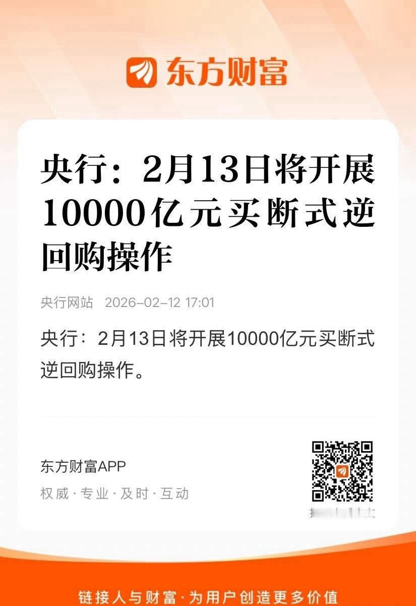盘后再来利好,明天又是春节假期前的最后一个交易日,会有资金买账吗?若从消息面分析,直接是利好。虽然央行没有直接下场“买股票”,但这万亿级流动性对证券板块是实打实的催化剂!无外乎以下三点:第一点:万亿级流动性投放市场提振投资者做多情绪,吸引增量资金入场,A股成交量有望维持高位!第二点:有利于两融业务扩张,提升券商自营与资管业绩,提升债券市场流动性。第三点:流动性宽松既提振市场信心又能直接降低券商融资成本,利好自营业务;若带动成交活跃,佣金收入也直接受益。结论:只要钱能流入股票市场,作为离钱最近的板块,证券必然是主要受益者之一,这属于“水源”层面的直接支持。明天而言,就看有没有资金愿意入场买账了呀。要是不得涨,可能就得创新低喽