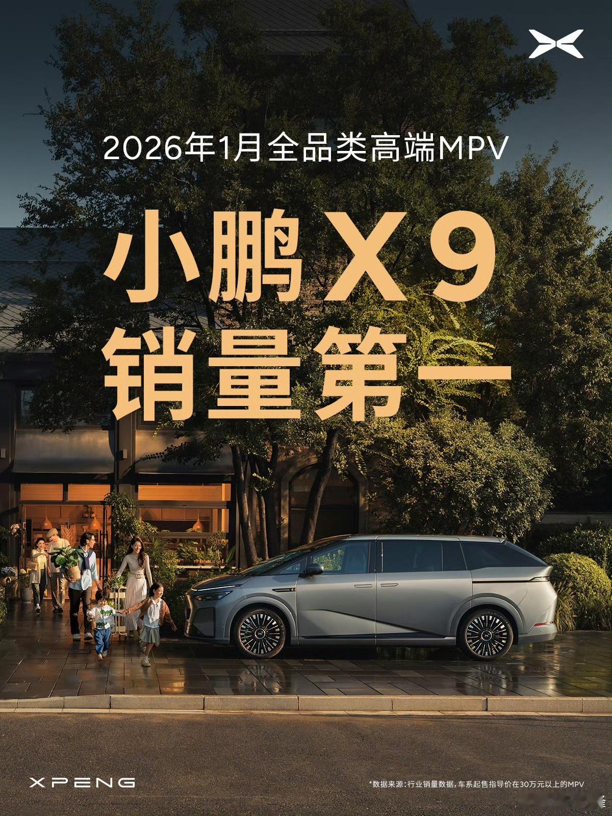 小鹏X9登顶月度高端MPV销冠根据汽车之家最新1月销量数据显示,小鹏X9以3,971辆的销量成绩,强势问鼎30万元以上高端MPV(不分能源形式全品类)销量冠军。超过第5名至极氪009、银河V900、理想MEGA、奔驰V级、威霆、世纪六款车型的销量总和(2419辆)同时,小鹏X9单月销量3971辆,超过理想旗下MEGA(414)、理想L9(1047)、理想L8(1173)、理想i8(1013)四款家用大车总和。小鹏X9凭借一车双能的旗舰产品力,全球最长续航、全系标配后轮转向、全球唯一三排电动三折叠等核心配置,精准切中多孩家庭升级换购需求,成为家用大车首选车型。随着3月小鹏X9纯电版本的上市,将进一步夯实在30万以上高端家用大车的销量领先优势。