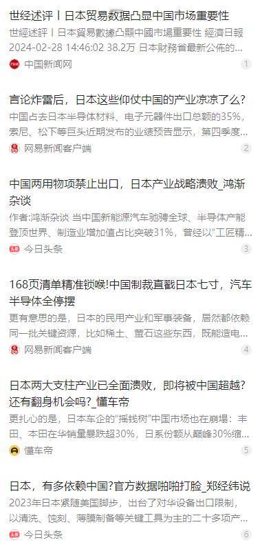 一位俄罗斯专家将中日对峙的真相讲了出来,只要中国依旧按兵不动打经济战,日本一败涂地主动认输或许并不是什么天方夜谭,如今日本境内的经济下跌便是一个例子,而这或许只是一个开始。 麻烦看官老爷们右上角点击一下“关注”,既方便您进行讨论和分享,又能给您带来更多优质的内容,感谢您的支持! 近期,有关中日博弈与日本经济走势的讨论受到国际舆论关注,有俄罗斯学者在分析亚太格局时提出,长期经济与产业竞争,将成为影响中日关系走向的关键变量。这一观点认为,在大国竞争背景下,经济韧性与产业链稳定性,比短期对抗更能决定最终格局,日本经济的脆弱性,会在长期博弈中被逐步放大。 日本近年在安全与外交层面持续追随美国,在半导体设备、高端制造等领域参与对华出口限制,试图配合美方推进所谓 “去中国化” 布局。但日本国内经济长期低迷,人口深度老龄化,国内消费持续萎缩,经济增长动力不足,政府与企业都面临不小的压力。 从经贸结构来看,中国长期是日本最重要的贸易伙伴之一,也是日本最大进口来源地和主要出口市场。日本 2024 年版《通商白皮书》显示,该国 1406 个品类商品超半数进口额来自中国,这一数字是美国的 2.5 倍,对华依赖度显著高于其他经济体。 在汽车、半导体材料、精密零部件、特种钢材等优势产业,日本企业高度依赖中国市场与供应链配套。日本一方面试图降低对华依赖,另一方面又无法承受市场与供应链断裂的代价,形成明显的结构性矛盾。 中国制造业持续升级,在新能源汽车、动力电池、光伏、成熟制程半导体等领域快速实现国产替代,并稳步向全球市场拓展。过去由日本占据主导的消费电子、家电、中端汽车等领域,市场份额正被中国品牌持续挤压。 日本汽车产业在华销量与份额连续下滑,新能源转型节奏偏慢,面对中国车企的全球化扩张,竞争力承压明显。在半导体材料与设备领域,日本虽保持局部优势,但中国在下游制造、封装测试及材料环节不断突破,产业自主性持续提升。 俄罗斯相关学者在分析中指出,日本当前的经济下行并非短期波动,若持续在安全与经济之间采取矛盾策略,压力会进一步累积。日本国内消费、企业投资、产业就业都会受到传导影响,经济下行压力可能长期存在。 对于日本而言,完全脱离中国市场与产业链并不现实,强行推进脱钩,只会抬高本土企业成本,削弱出口竞争力,加剧经济困境。近年来,丰田、本田、索尼、松下等大型日企,仍在扩大对华投资与合作,也体现出产业界的务实选择。 从国际格局来看,亚太地区产业链高度融合,强行割裂分工体系,不符合区域内任何国家的长远利益。日本若持续将经济问题政治化,牺牲产业与市场利益服务于外部战略,最终代价将由本国经济与民众承担。 中国始终坚持以经济建设为中心,稳步推进高水平对外开放,在科技自主、产业升级、市场稳定等方面保持长期定力。不主动升级对抗,专注提升自身竞争力,本身就是最可持续的战略选择。 在这种长期格局下,日本国内要求修复对华经贸关系、稳定产业链合作的声音会逐步增强。经济压力会推动日本政界与产业界重新评估对华政策,回归更理性务实的对华态度。 当前日本经济面临的挑战,本质是国内结构问题与外部战略选择共同作用的结果,并非单一因素造成。但持续对华强硬、配合外部遏制,显然会进一步放大其经济脆弱性,让复苏难度持续加大。 俄罗斯学者的分析也提醒外界,亚太地区的竞争最终拼的是经济韧性、产业实力与市场容量。军事对抗与政治操弄只能制造短期紧张,无法改变长期经济与产业格局。 中日两国一衣带水,产业互补性强,正常的经贸往来对两国企业与民众都带来切实利益。人为制造对立、干扰产业链稳定,只会让双方都承受损失,而日本经济体量与结构的局限性,使其承受能力更弱。 从现实数据看,日本对华出口占其总出口比重长期保持在 20% 左右,多个支柱产业在华营收贡献突出。一旦双边经贸大幅降温,相关产业利润、就业、股市都会受到直接冲击,这是日本决策层无法回避的现实。 中国在稀土、稀有金属、关键化工材料等领域的供应地位,也对日本高端制造形成稳定约束。日本半导体、新能源、精密制造等行业,难以找到可完全替代中国的稳定供应方。 综合来看,日本经济的下行趋势,与其外交安全政策的偏向存在明显关联。若继续维持当前路线,国内经济压力将持续传导,最终倒逼政策做出调整。 对于中国而言,保持战略定力,坚持以经济与科技为核心竞争力,维护产业链安全稳定,就是应对外部博弈最有效的方式。长期来看,理性合作符合中日双方利益,也更有利于亚太地区的和平与发展。