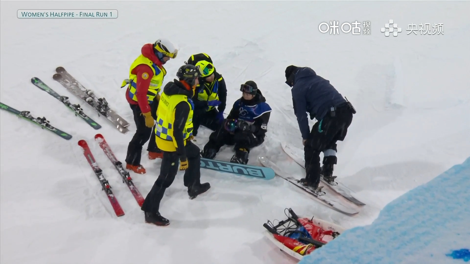 单板滑雪U型场地决赛,韩国名将崔佳恩在第一轮摔倒受伤,随后选择退赛。