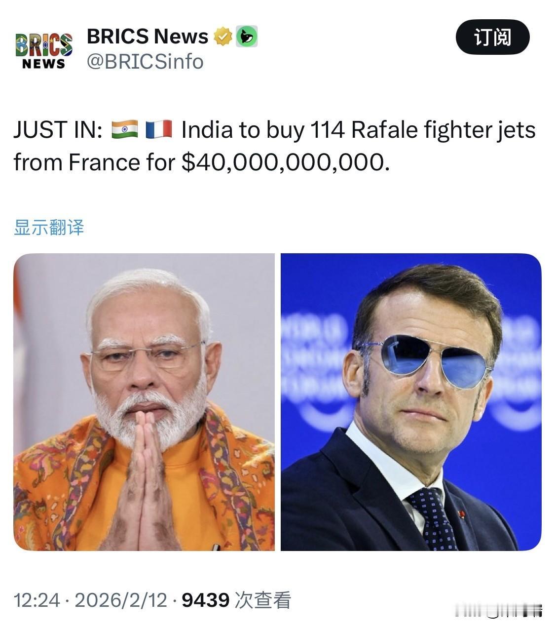 2026年2月12日,由印度国防部长辛格(Rajnath Singh)主持的印度国防采购委员会(DAC)正式批准了采购 114架阵风(Rafale)多用途战斗机 的“必要性认可”(AoN)。 以下是该项军购计划的关键细节: 项目金额:该笔订单预计总价值约为 3.25万亿卢比(约合 390亿至 400亿美元),是印度历史上规模最大的单笔国防采购协议。 本地化生产:根据协议,114架战机中约 90至96架将在印度本土制造,且国产化率将达到约 50%,以支持“印度制造”(Make in India)倡议。 后续流程:目前的批准属于初步许可(AoN)。接下来,印度国防部将与法国达索航空(Dassault Aviation)进行详细的技术和价格谈判,最终合同签署预计将在 2026年底或2027年初 完成。 配套采购:除阵风战机外,此次价值约 3.6万亿卢比的国防方案还包括采购 6架美制 P-8I 海上巡逻机、战斗导弹及高空伪卫星(AS-HAPS)等装备。 此次采购旨在填补印度空军日益严重的战斗机缺口。目前印度空军仅拥有 29 个中队,远低于预定的 42 个中队目标。