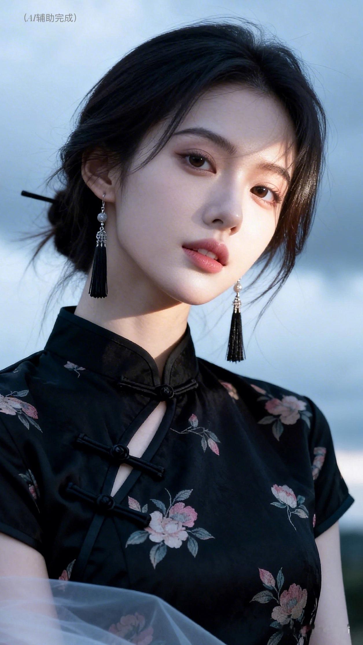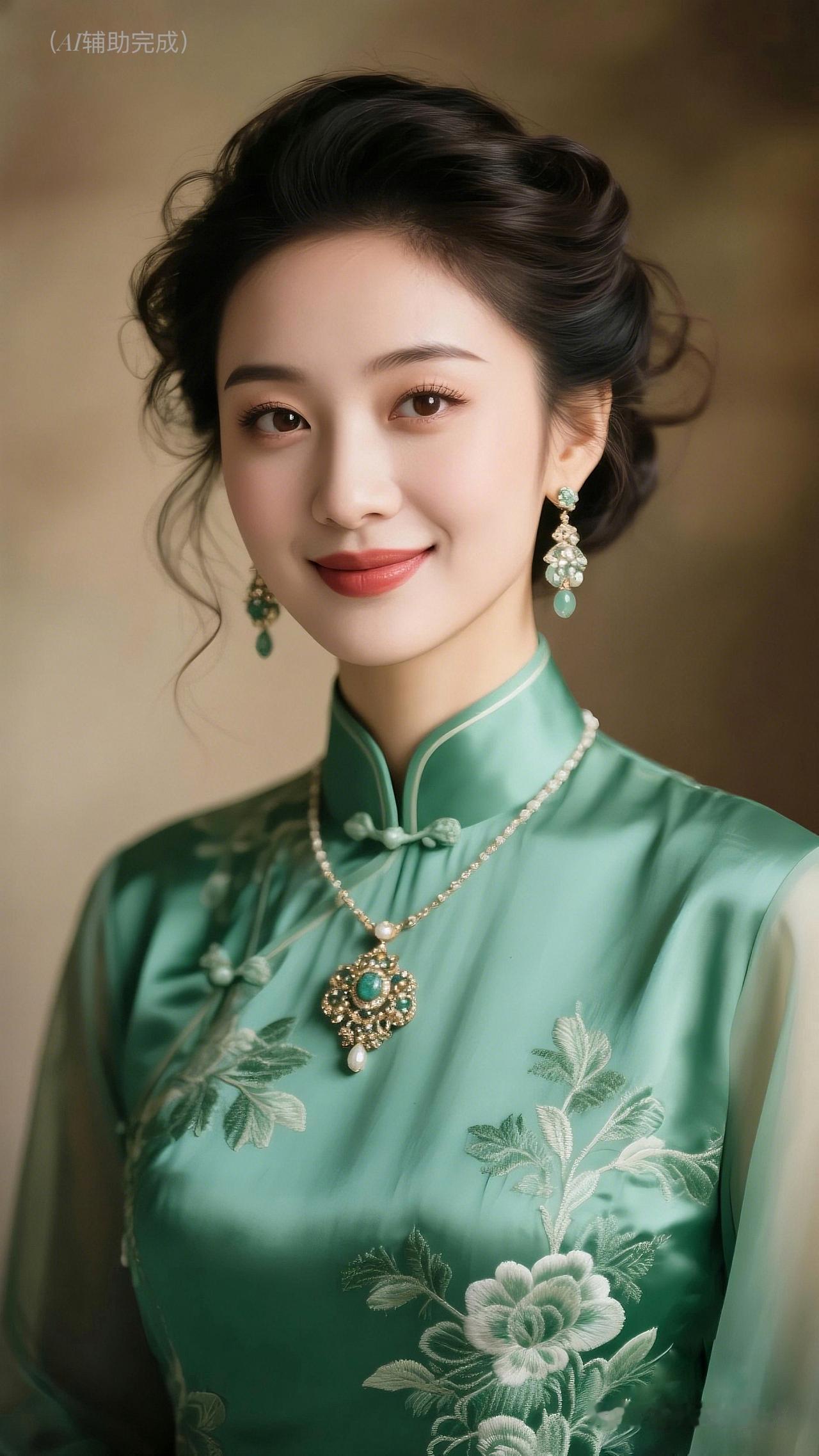乌发卷直皆生韵,眉眼含情唇点朱。或着旗袍缀翡翠,或穿纱衣摇流苏,珠宝轻缀更添华。背景虚化留余白,温婉如诗,静谧如画,一眼便陷这东方雅致里。