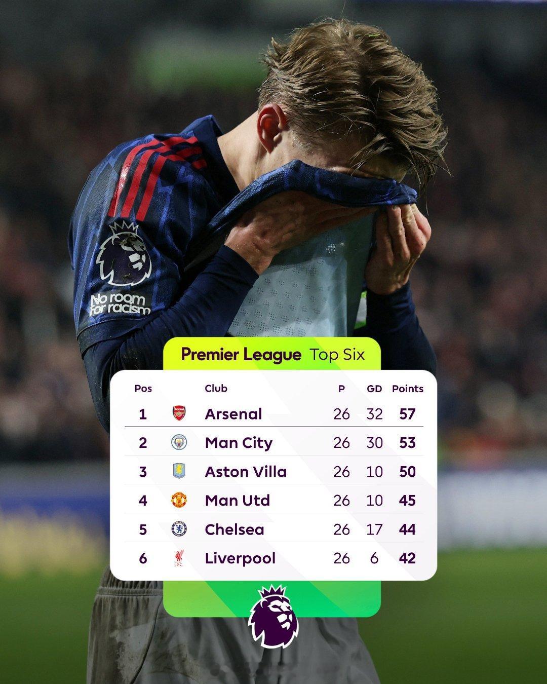 【阿森纳榜首优势缩至4分】英超第26轮,布伦特福德1比1阿森纳,曼城3比0富勒姆。由于枪手在小蜜蜂身上丢了2分,他们领先曼城的积分优势缩小到4分,联赛还剩下12轮,争冠走势越来越激烈。