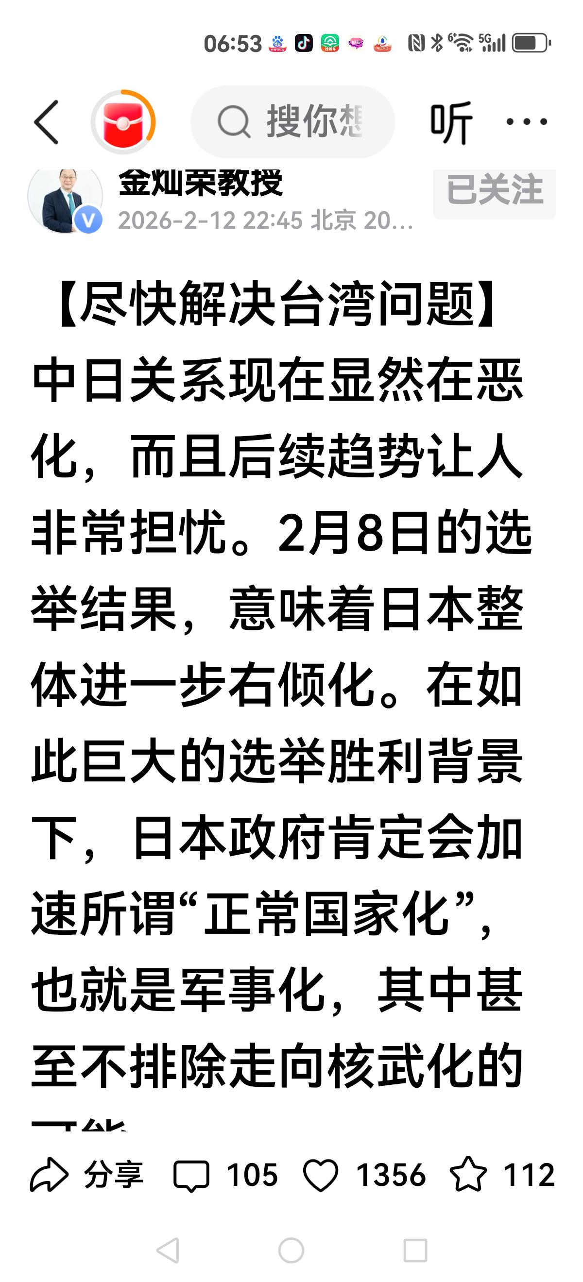 【弯弯的月亮】 金灿荣忧心忡忡,他担心中日关系有可能越来越恶化,要抓紧解决弯弯问题,因为日本即将走向军事正常化,有可能核武器也会拥有…… 显然这种观点比张维为与沈逸悲观许多,张维为那句:一觉醒来,也许解放了,弯弯还有下一次大选吗? 沈逸更是当游戏在议论,好像探囊取物。 只有蔡正元唱反调:**都不敢打,还谈什么**。 瑞哥还是那个观点,打容易,后面如何应对欧美,所付出代价做好充分的准备。