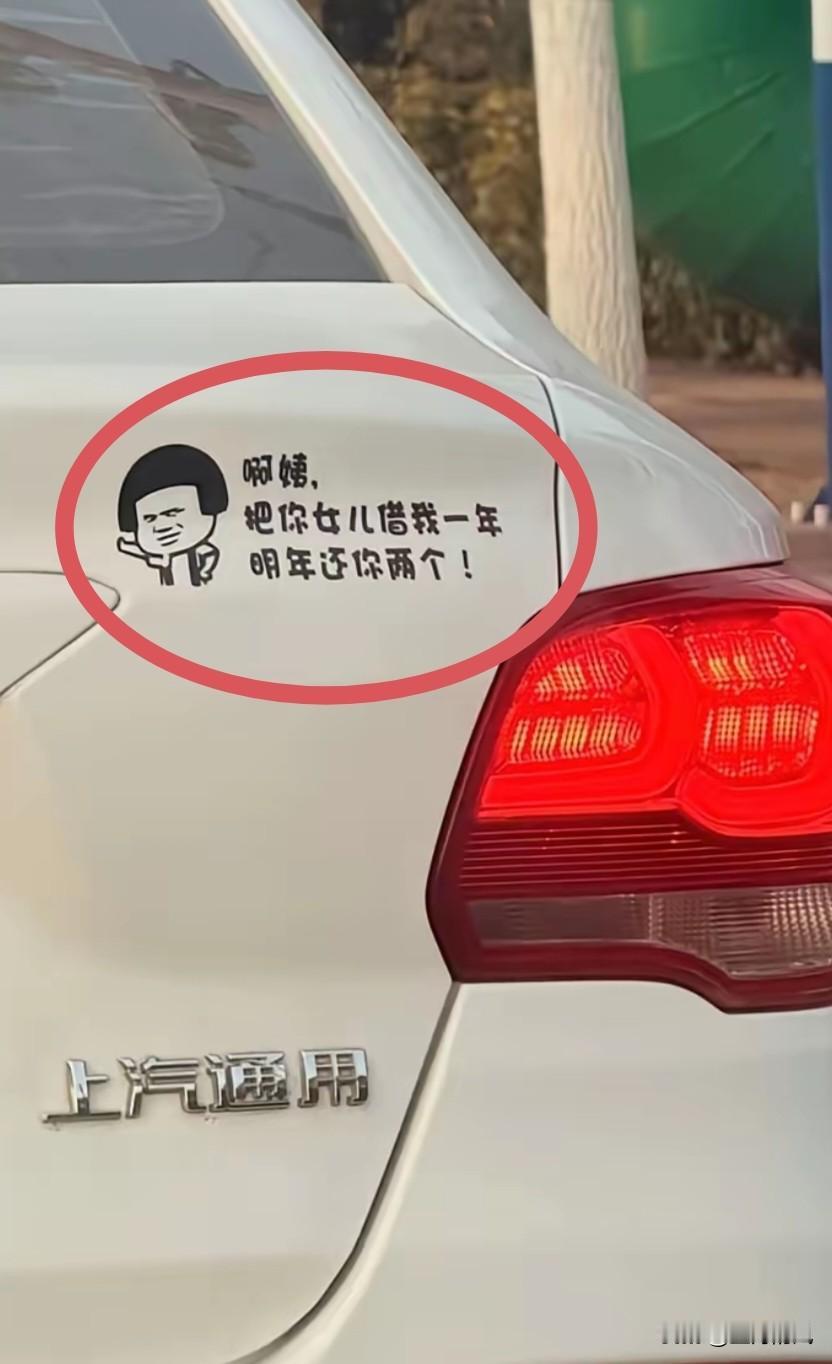 “阿姨,把你女儿借我一年,明年还你两个”。贴这种低俗车贴,就是“无底线”的耍流氓。把低俗当幽默,把冒犯当个性,开着这样的车招摇过市,生怕别人不知道自己脑子里装的全是狗屎。 永远记住这段话:每个男人都有母亲、妻子或女儿,侮辱女性,就是侮辱自己的家人。 雷人车贴