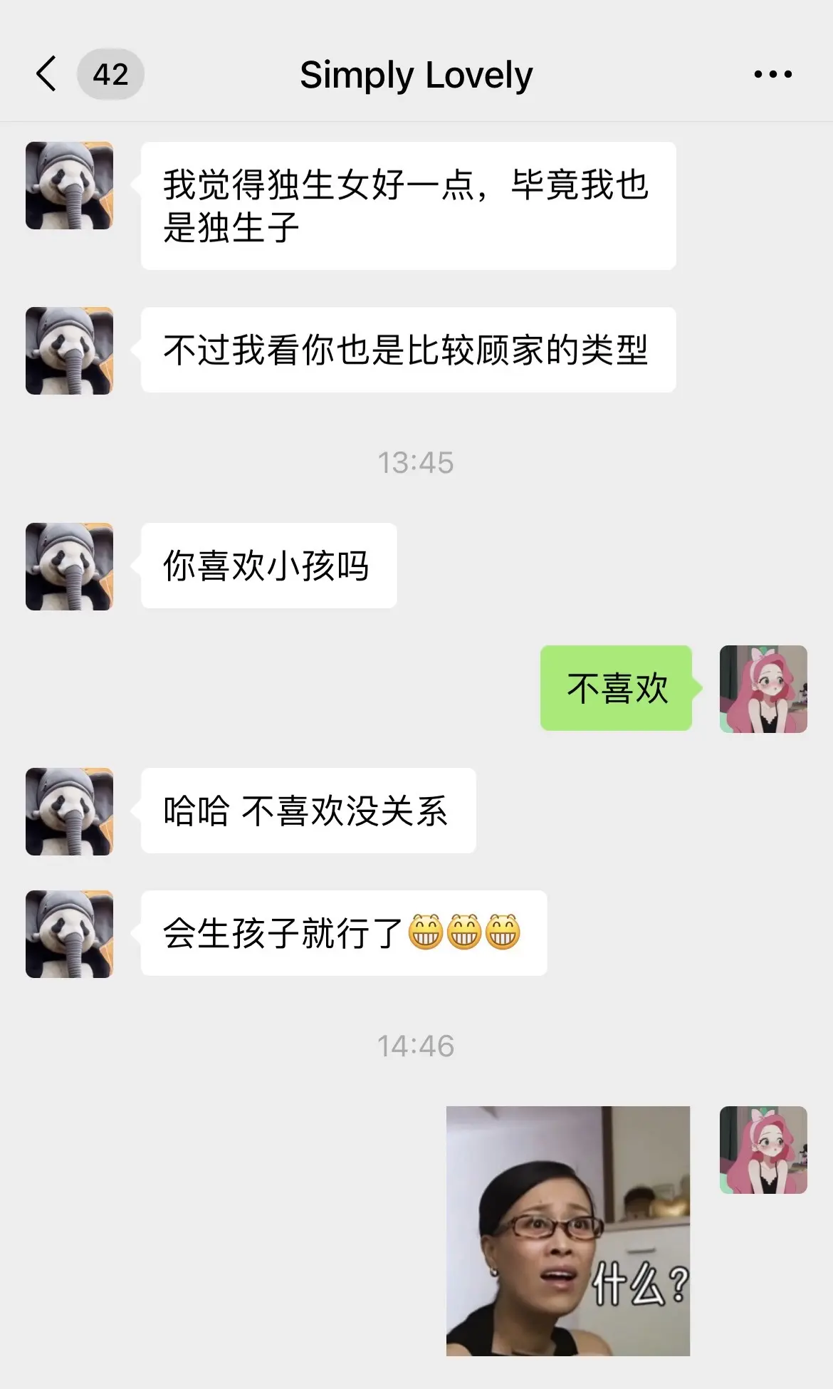 男人去相亲,是去找一个适合结婚的人,所以他考虑的是如果在婚后兼容,而女人都到相亲的地步了,却还在希望男人是舔狗,优先看的是男人能否提供情绪价值。所以两人注定是鸡同鸭讲,对不上线。