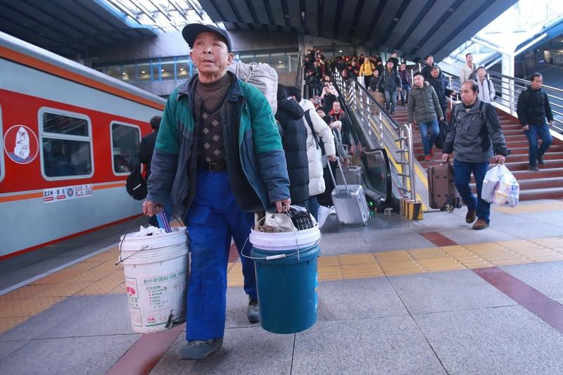 54岁农民工提塑料桶和行李返乡过年:一只桶,装下中国人的一年 车站里,54岁大叔的身影刷屏全网:肩上扛着鼓鼓的行李袋,手里拎着一只磨得发白的塑料桶,没有光鲜行李箱,没有精致年货,这就是他在外打拼一整年的全部家当。有人说寒酸,有人看心酸,可谁读懂了这只桶里,藏着最朴素的担当与深情。 这只十几块的塑料桶,是打工人的“春运神器”。装得下干活的工具、换洗的衣物,藏着给孙辈带的糖果、给老伴留的特产;买不到坐票,倒扣过来就是板凳,一路撑过千里归途;带回老家,能装粮食、盛水、拌饲料,结实耐用,一分钱都不浪费。对他们来说,实用比体面重要,省钱比排场实在。 很多人不理解:辛苦一年,就不能对自己好一点吗?转折来了——不是不想,是不敢。54岁的年纪,上有老要赡养,下有小要帮扶,工地的汗水、流水线的疲惫,从不敢喊累;每一分钱都掰成两半花,省吃俭用,只为让家人过得安稳一点。他们把体面藏在心里,把责任扛在肩上,用最笨拙的方式,爱着一家人。 这只塑料桶,装的不是杂物,是生活的重量,是父亲的脊梁,是中国人的团圆。春运路上,千万个这样的身影,从繁华都市奔赴故土乡村,不在乎穿得好不好、带得多不多,只盼着早点回家,吃一口热饭,见一见亲人。 他乡再繁华,不如家乡一盏灯;行囊再简陋,抵不过团圆一颗心。他们是父亲、是丈夫、是儿子,是撑起家庭的顶梁柱,用平凡的坚守,书写着最伟大的担当。 别嘲笑他们的朴素,别轻视他们的平凡。每一个为生活拼命的人,都值得尊重;每一次跨越山海的归途,都藏着最动人的年味。 愿每一位返乡务工者,一路平安;愿所有付出,都有回报;愿人间烟火,温暖每一个奔波的身影。