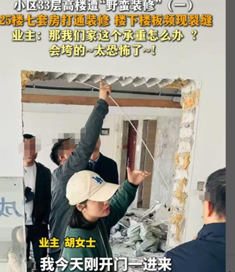 “你这是谋财害命!”长沙,一女子住在33层高楼的24楼。而25楼业主,竟将7套房屋全部打通,还擅自砸毁整栋楼的承重结构,让楼下及周边住户陷入安全恐慌。 信源:2025年12月26日-风芒新闻-《湖南某小区25楼打通7套房砸承重墙楼下墙面裂满缝》 事发当天中午,24楼的胡女士正午睡醒,耳边却传来连续不断的“砰砰”声和钻墙的尖锐声。 最初她以为只是普通装修施工,但随着时间推移,声音越来越大,震动明显,她的房间书架上的物品都微微晃动。忍无可忍的胡女士决定上楼了解情况。 当她按响25楼的门铃时,没有人应答。 她沿着楼道走去,透过门缝和阳台的缝隙,她惊恐地发现:原本7套独立的户型已被打通,墙体被彻底拆除,地板上散落着砖石、钢筋和灰尘,而最令人震惊的是,有些承重梁已经被凿开,支撑结构似乎出现了明显松动。 胡女士顿时惊出一身冷汗,心里暗暗叫苦:“这不是谋财害命吗?整栋楼的安全都被拿去冒险了!” 她立刻联系物业和楼下邻居。一时间,整层楼的住户都聚集在走廊上,大家纷纷拿出手机拍摄照片和视频,记录这一违法改造的现场。 邻居李先生告诉记者:“我们天天生活在这里,楼上拆墙的声音大得能把家里的吊灯震动掉,我每天晚上都睡不安稳。我们根本没想到有人会把承重结构当作可以随意改造的东西。” 随着事件曝光,物业公司迅速介入调查,但也承认,对这类私自改造的监管存在盲区。 物业负责人表示:“我们曾收到装修申请,但并未预料到业主会把七套房屋打通,并破坏承重墙。根据建筑规范,这属于严重违规,可能影响整栋楼的安全。” 事件曝光后,网络舆论迅速发酵。微博上,话题长沙楼上私改承重墙短时间内阅读量突破千万。网友们议论纷纷: 一位网友评论道:“这完全是拿住户的生命开玩笑,简直不可理喻,物业也要负责任。” 另一位网友表示愤怒:“装修噪音可以忍,但毁掉承重墙?这不是装修,是作死!万一楼塌了,楼上业主负得起责任吗?” 还有网友关注社会监管问题:“从设计到物业管理,如果漏洞太大,这类事件迟早会出现。相关部门必须加强监管和执法。” 与此同时,也有网友指出,这起事件背后可能涉及利益问题。 25楼业主打通7套房屋,很可能为了增加投资价值或营造“豪宅”格局,但这种违法操作不仅危害自身,也波及周边住户。 网络上热议不断,有网友甚至制作了施工现场模拟图,展示拆除承重墙后的潜在风险,警示公众不要轻视建筑安全。 媒体介入后,相关部门也迅速行动。长沙市住建局发布通报称,已经派出执法人员前往现场进行勘查和封停施工。 执法人员表示,将对违法改造行为依法处理,同时对整栋楼进行安全评估,以排除潜在危险。 市住建局工作人员强调:“高层住宅承重墙的安全性不容忽视,任何违规拆改行为都必须严肃查处。我们将依法追究责任,确保居民生命财产安全。” 事件在社会上引发了广泛关注和讨论,也让更多人意识到高层住宅安全的重要性。很多人回忆起自己的居住经历,谈及装修时的各种安全隐患,纷纷呼吁加强法规宣传和监管力度。 专业人士提醒居民,装修合同和施工审批一定要严格遵守,不能抱侥幸心理,随意破坏结构,否则后果不堪设想。 而胡女士和楼下住户仍处在心理阴影中。胡女士对记者说:“每天睡觉都不踏实,想想楼上业主的行为,我就后怕。 希望相关部门能够严查,让大家安心生活。”邻居李先生补充:“这不是小事,生命安全摆在这里,任何利益都不能凌驾于安全之上。” 目前,事件仍在进一步调查中,执法部门已经要求停止施工,并对25楼业主采取法律手段。社会各界也在持续关注事态发展,网友们不断转发现场视频和照片,呼吁依法追责。 长沙这起高楼改造事件,无疑成为全国范围内讨论高层住宅安全、物业监管以及个人私改建筑结构风险的热点案例。
