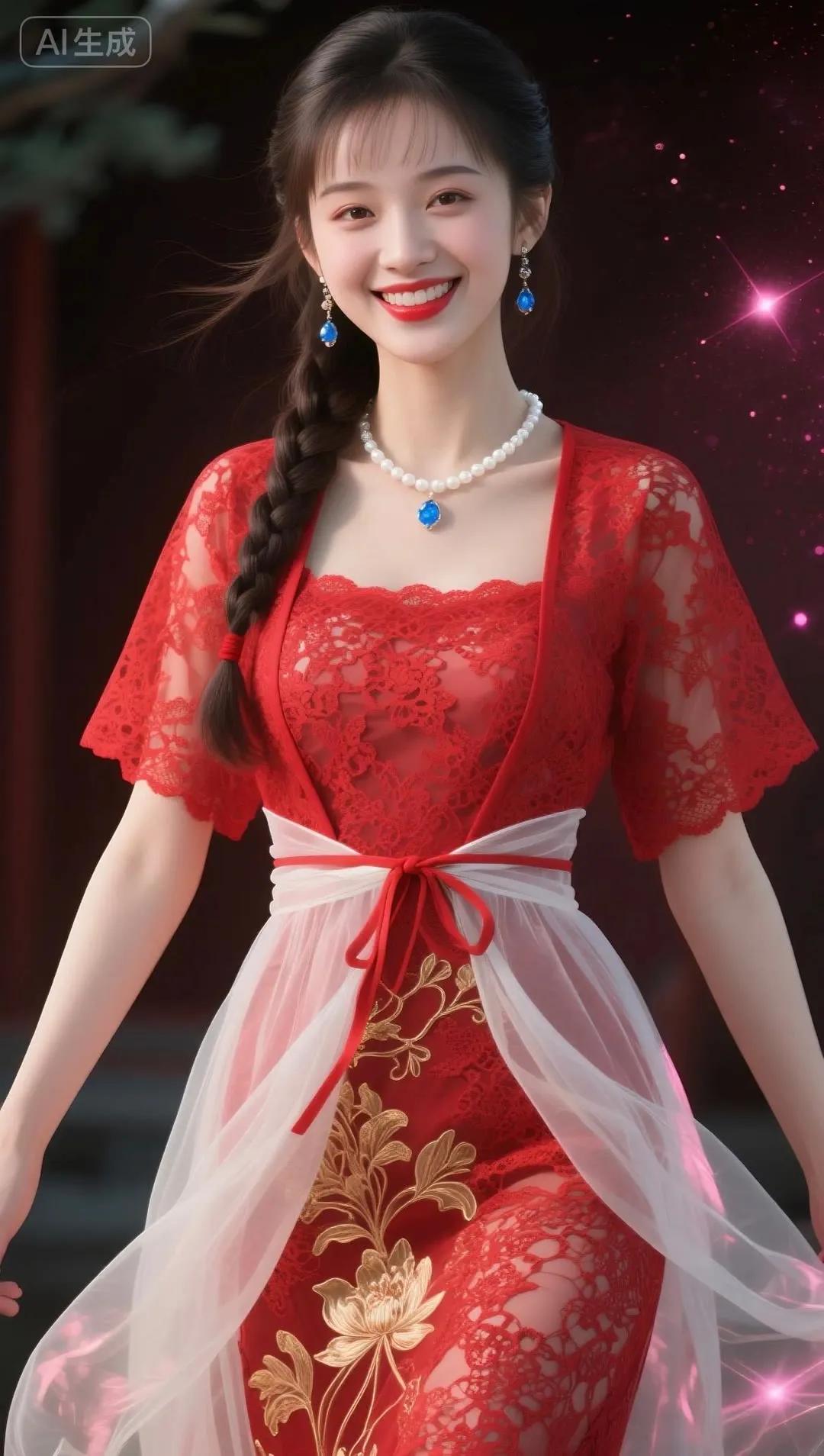 梦幻少女风,红衣飘逸,甜美笑容,仙女下凡