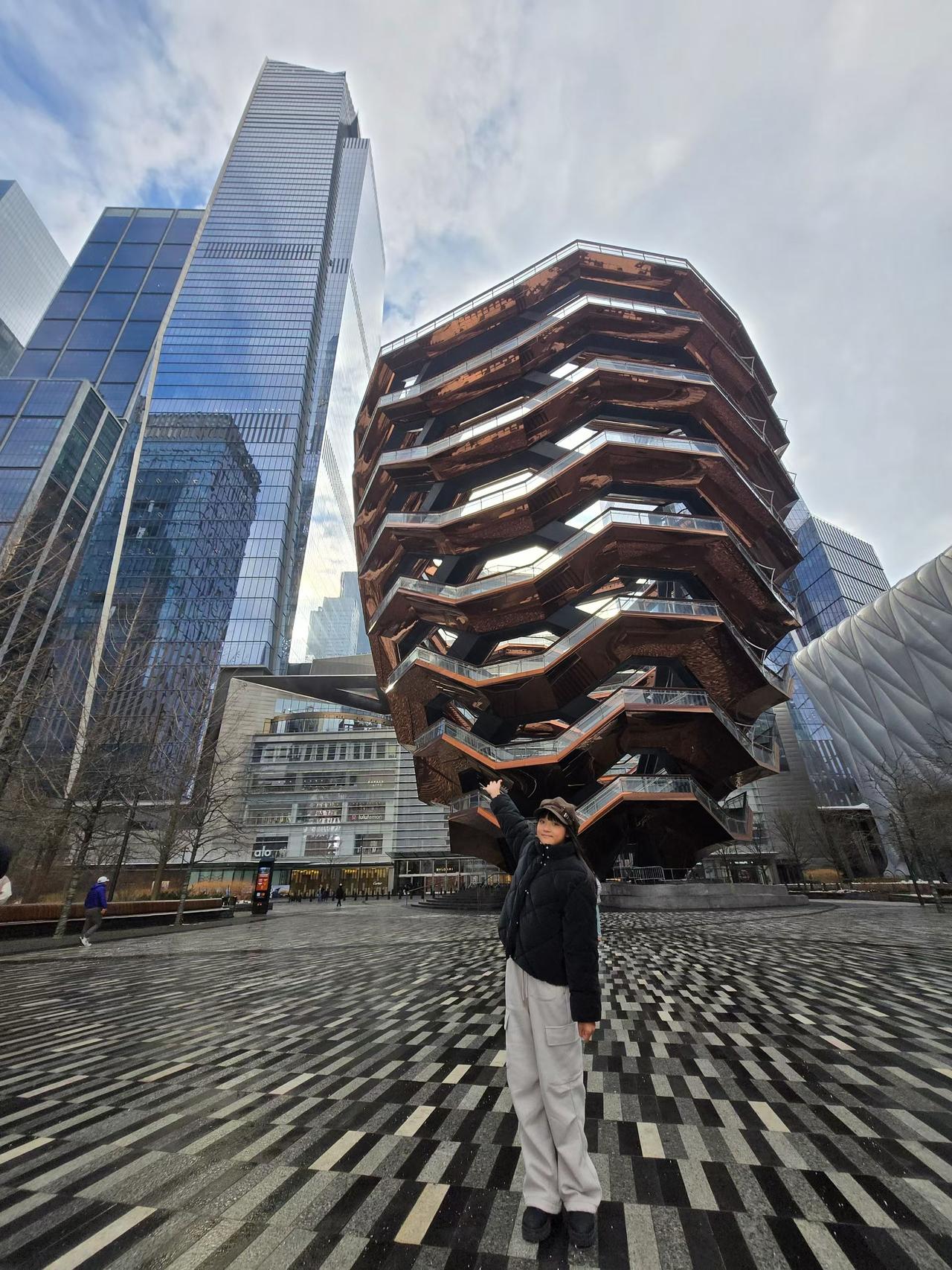 孙女和父母2月10日,从北京飞抵美国旅游度假。昨天孙女兴致勃勃在美国纽约哈德逊广场,烙克菲逊广场,时代广场等地打卡留念。孙女说:原来曾在书本上见过,现在亲临现场,真是大开眼界啊! 1,哈德逊广场 是美国历史上规模最大的私营房地产开发项目。广场中心的蜂巢状阶梯结构,由154段楼梯和约2500个台阶组成,是世界各地游人俯瞰曼哈顿全景的热门观景点。 2,烙克菲逊广场 是全球最具影响力和商业与文化中心之一。 3,时代广场 位于曼哈顿中城,被誉为:“世界十字路口”它以无与伦比的霓虹灯广告,巨型电子屏幕和浓厚的娱东氛围闻名遐迩。
