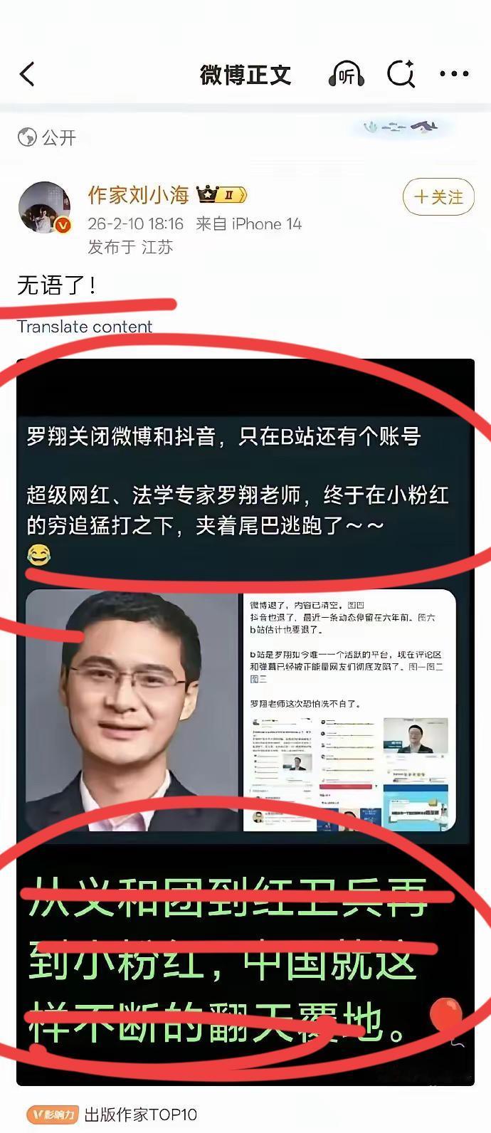 罗翔教授被网友骂到退网了!! 著名作家发文表示,很是无语!! 什么翻天覆地,也别扯那么远! 我想知道,之前把他捧到天上去的那帮人是谁,现在,要把他打到十八层地狱去的,又是一些什么人?我严重怀疑,都是同一帮人~至少很大一部分是重合的!! 有网友职指责他是西方价值观,西方那一套的传播者,尤其是萝莉岛事件爆发够,他一声不吭,一言不发,引发了大家的猜想,认为这是坐实了他的双标行为!! 退网也好,好好反思,好好学习, 现在够乱了,啥也不要说了!! 对于罗翔教授被骂到退网,你有何想说的呢?