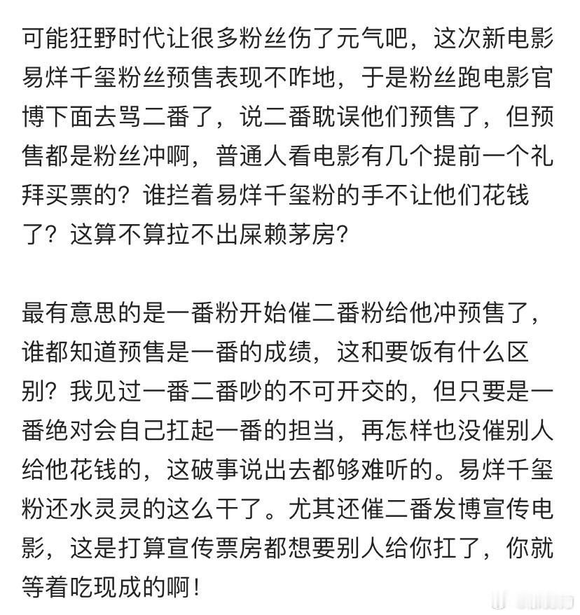 易烊千玺粉丝撑不起预售跑官博下面骂二番演员!