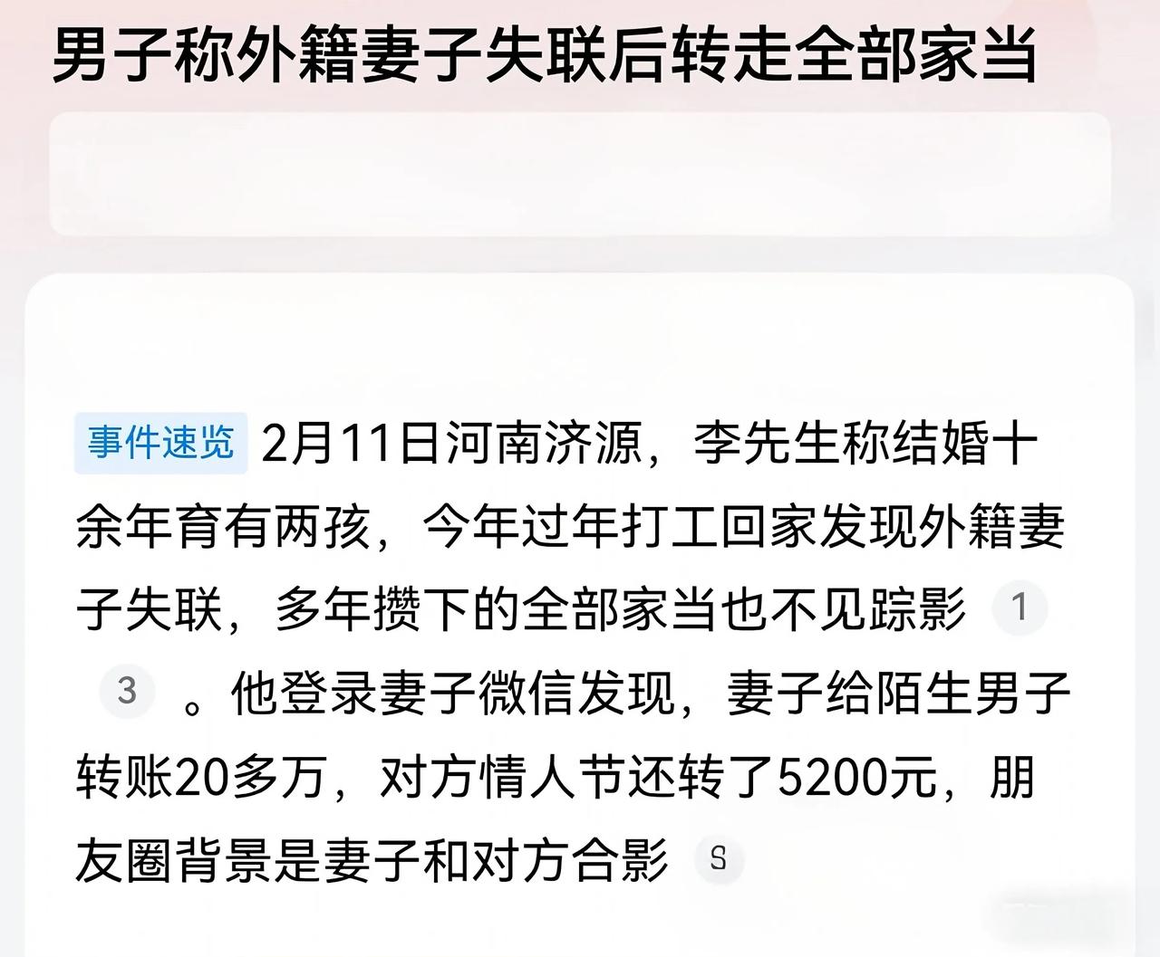 外国老婆也不靠谱,结婚都十多年了有两个娃还能跑路,还把全部家当转给对方,谁摊上这事也闹心呀!关键这事女的和那个男的都不违法,就是道德问题,想维权都难! 婚姻保护了什么呢?非法同居不应全盘下架,对于有婚姻的男女和他人同居都应视为非法,明显的违背公序良俗呀!大家觉得呢?