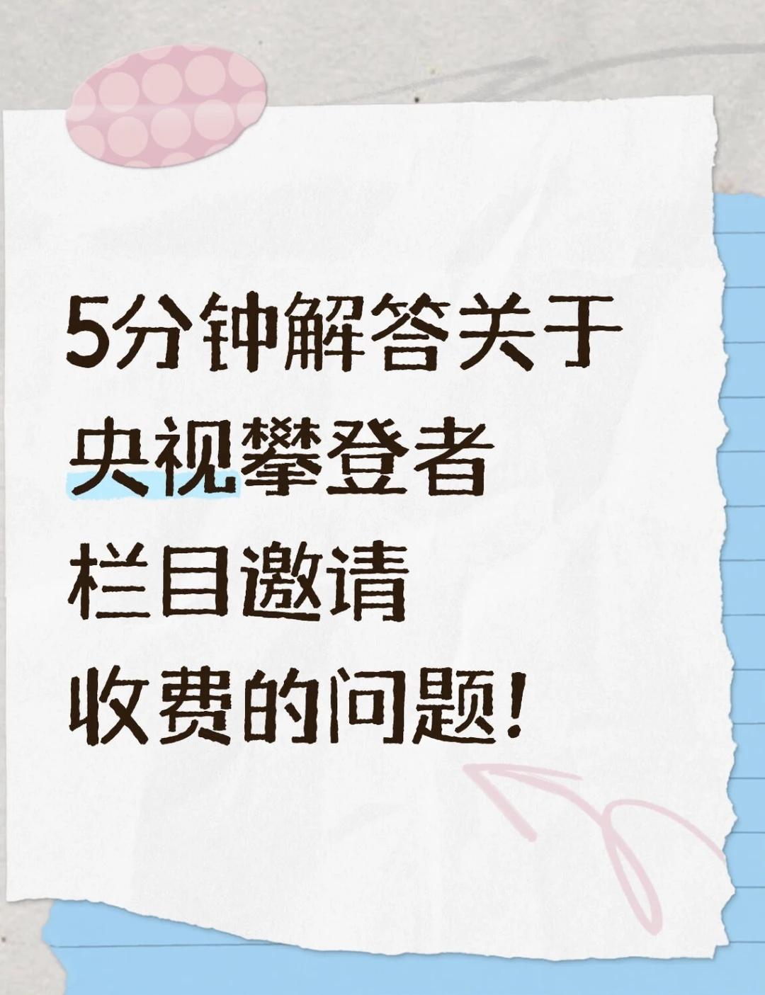 5分钟解答关于央视攀登者栏目邀请收费的问题 前阵子有小伙伴问央视攀登者栏目邀请收费的问题,作为追更党今天来好好聊聊~首先明确说:正规央视栏目邀请嘉宾是和费用沾不上边的!毕竟作为知名媒体,核心是传播正能量,怎么会用收费上节目这种操作呢? 不过为啥会有上面的传言?可能是个别ji构借大平 台的名义误导大家~这里划重点:大家一定要核查邀请信息!真正的栏目邀请流程超规范:编导团队会根据选题方向主动联系合适嘉宾,从前期沟通到录制全程不涉及任何费用,反而会提供专业的拍摄支持,毕竟节目质量才是王道~ 最后给大家支个小妙招:如果收到栏目邀请,但凡提到费用的直接la黑!咱们支持优质内容,但也要擦亮眼睛~毕竟真正的好节目,靠的是实力和故事说话,不是👛呀~