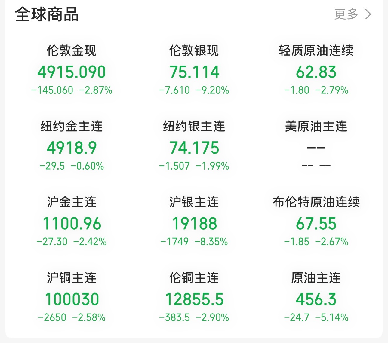 醒来一看,天塌了。美股高开低走,纳指跌2.03%,全球大宗商品也是大跌,黄金跌2.87%,白银跌9.2%,铜跌2.9%,原油跌2.79%。今天A股科技股、黄金、有色股预计要下跌了。利好老登股和券商股。