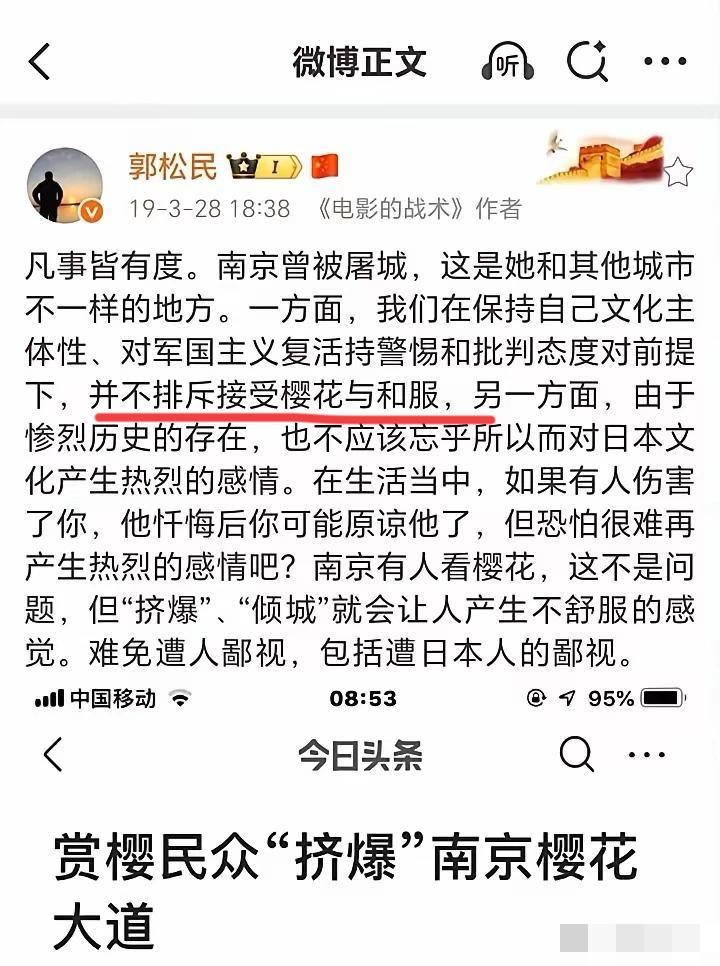 郭总这么说,有点不合适了吧! 广州白云机场的工作人员穿个汉服,老郭就跑出来批判,说不伦不类,汉服是农业社会的产物,跟我们工业文明社会气质不符,格格不入?? 这是什么话?太不自信了~ 而在几年前,郭总还评论了和服,他说并不排斥反对和服!!看看,因为太双标了吧,和服你不排斥,为何要这么排斥汉服呢?穿上和服赏樱花可以,机场人员穿汉咋就不行了,要换回来? 郭总之前每次都批判胡锡进臣妾主义,但从这个事情看,老胡充其量是四平八稳和稀泥,而您呢,著名的昆仑策高级研究员郭总,立场和观点大有问题啊!! 这也太双标,太明显,太不自信了吧~ 网友说,这回是暴露了! 对此,你有何看法呢?