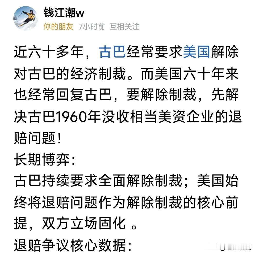 【古巴之殇】 为什么古巴沦落到没有原油的地步? 这是特朗普签署一份文件有关,禁止任何卖给古巴原油的行为,导致最后卖给古巴原油的墨西哥,也不得不按下停止键。 在特朗普抓取马杜罗后,所有拉美,中东国家开始一边倒向美国。 还记得美总统奥巴马踏上古巴土地那一刻吗?那是88年后首次访问。 为何至今美古依旧矛盾重重呢?这还得从古巴卡斯特罗说起,掌握政权卡斯特罗第一件事就是没收西方在古巴投资的企业,包括美国。 美国立刻做出反应封锁古巴,由于当时美苏抗衡,因而古巴还能支撑,随着美国特朗普强势来袭,俄罗斯自顾不暇,古巴命运迎来至暗时刻。