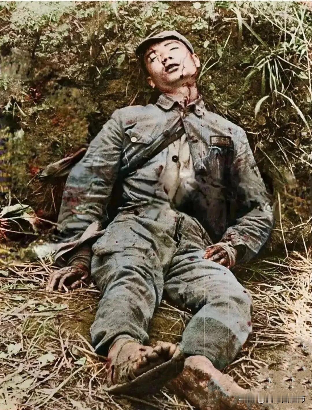 1938年徐州会战时,一名倒在地上的川军战士,在刚刚的冲锋中,他不幸中弹。他痛苦的挣扎着,想继续站起来再次发动冲锋,然而严重的受伤,让他只能倒在地上动弹不得。血水已经沾满了他的脸上和身上,此刻的北方还格外寒冷,没一会血水已经在他的身上凝固,然而这么寒冷的天气,他却仅穿着一身单薄的军装,脚上竟然穿的是草鞋。 他们就是靠着这样的装备赶到了徐州战场,然而还能来得及休整,就投入到了激烈的战场中。他的手上还打着绷带,可见在之前的战斗中他已经受伤,然而这次他不幸被命中胸口,因为想挣扎着站起来,他的双手沾满了泥土和已经凝固的血水,在不能多杀几个小鬼子的不甘中,他慢慢的闭上的眼睛。 这只是抗战时期感人的一幕,还有更多这样可歌可泣的中华儿女,他们的英勇付出和流血牺牲,才有了我们现在美好的生活。