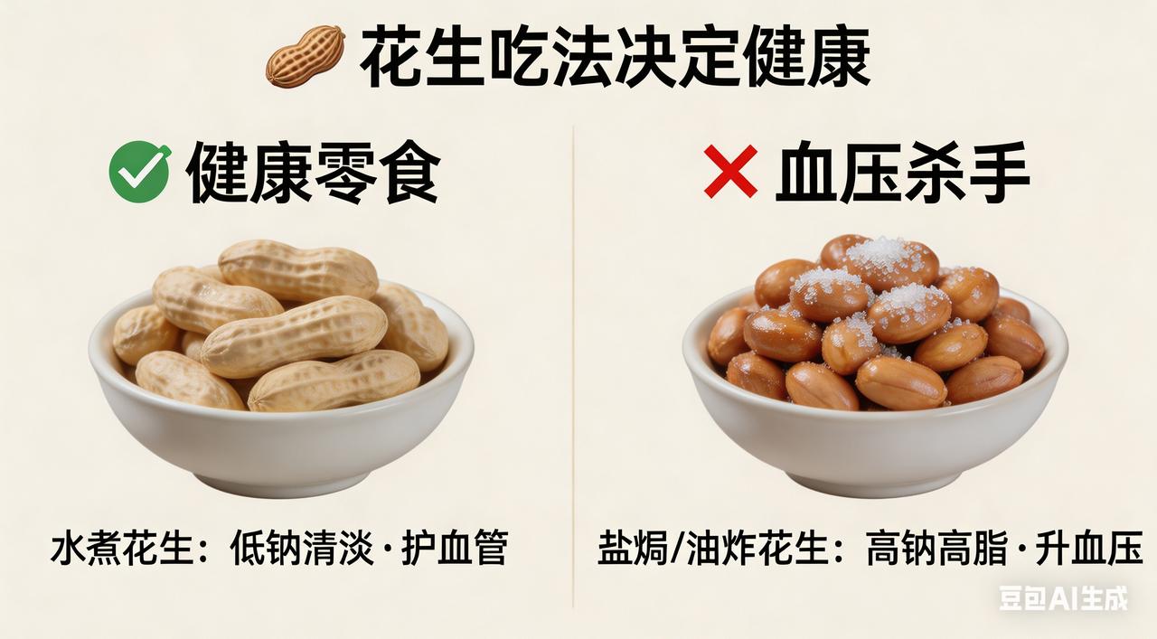 从 "健康零食" 到 "血压杀手",花生吃法决定健康 花生被点名!医生提醒:高血压还常吃花生,很快或迎来这些后果 在美食的缤纷世界里,花生宛如一颗璀璨的明星,始终散发着独特的魅力。作为下酒菜,醋泡花生酸爽开胃,那股独特的香气在舌尖上散开,瞬间唤醒味蕾,让人一杯接一杯地沉醉在美酒与佳肴的交融中;当作日常零食,炒花生香脆可口,每一口都伴随着“嘎吱嘎吱”的悦耳声响,仿佛是一场味蕾的欢快舞蹈,让人欲罢不能。花生富含蛋白质、不饱和脂肪酸,本应是健康饮食的优质之选,可近期多位医生却神色凝重地公开发出提醒:高血压患者若不严格控制花生的摄入量,身体可能很快就会陷入重重危机,健康亮起红灯。 花生,堪称高热量坚果界的“王者”,其脂肪含量超过40%。高血压患者的血管,就像一条历经岁月沧桑、弹性大不如前的老旧管道,血液在其中艰难地流通,阻力重重。而过量摄入花生中的脂肪,就如同给原本就黏稠如浆糊的血液中又疯狂地倒入了大量油脂,血液黏稠度瞬间急剧飙升。这就好比原本潺潺流淌的清澈溪流,被突然涌入的泥沙严重堵塞,水流变得缓慢而滞涩,血管壁承受的压力也如同不断攀升的气压,直线上升。临床研究数据犹如一记响亮的警钟,清晰地显示:连续一周每天食用超过50克花生的高血压患者,血压波动幅度会比平时高出20%,头晕、头痛等不适症状如同恼人的小恶魔,频繁地发作,让患者苦不堪言,生活质量大打折扣。 除了油脂这个“麻烦制造者”,加工花生中隐藏的盐分更是“暗藏杀机”的“隐形杀手”。卤花生、咸干花生等常见口味,每100克的含盐量竟能达到每日推荐摄入量的60%。盐中的钠离子就像一个贪婪无度、不知满足的“水分收集器”,会疯狂地促使身体潴留大量水分,导致血容量如同气球充气一般急剧增加。血压也随之如同脱缰的野马,一路狂飙,这无疑是在本就脆弱不堪、不堪重负的血管上又狠狠地压上了一块千斤巨石,让血管随时都有破裂的危险。更令人胆战心惊的是,花生容易受潮滋生黄曲霉毒素,这种毒素堪称肝脏的“头号克星”。长期摄入会像一场无情的风暴,严重加重肝脏的代谢负担,使肝脏这座身体的“化工厂”无法正常运转,无法正常发挥调节血压的重要功能,间接增加动脉粥样硬化的发病风险,让身体陷入一个万劫不复的恶性循环。 其实,高血压患者并非要与花生彻底“分道扬镳”、老死不相往来。医生建议,每周食用不超过100克,优先选择原味水煮花生,这种烹饪方式就像一位温柔的守护者,能最大程度保留花生的营养,同时避免添加过多调味剂,减少对身体的伤害。食用时还可以搭配高纤维蔬菜,如清爽可口的芹菜、营养丰富的菠菜等,高纤维就像一个勤劳的清洁工,能延缓油脂的吸收,减少对血压的冲击,为身体健康保驾护航。 如果你还想了解其他常见食物对高血压的影响,我可以为你精心整理一份详细的饮食避坑清单,让你在享受美食的同时,也能更好地守护血压健康,远离疾病的困扰。