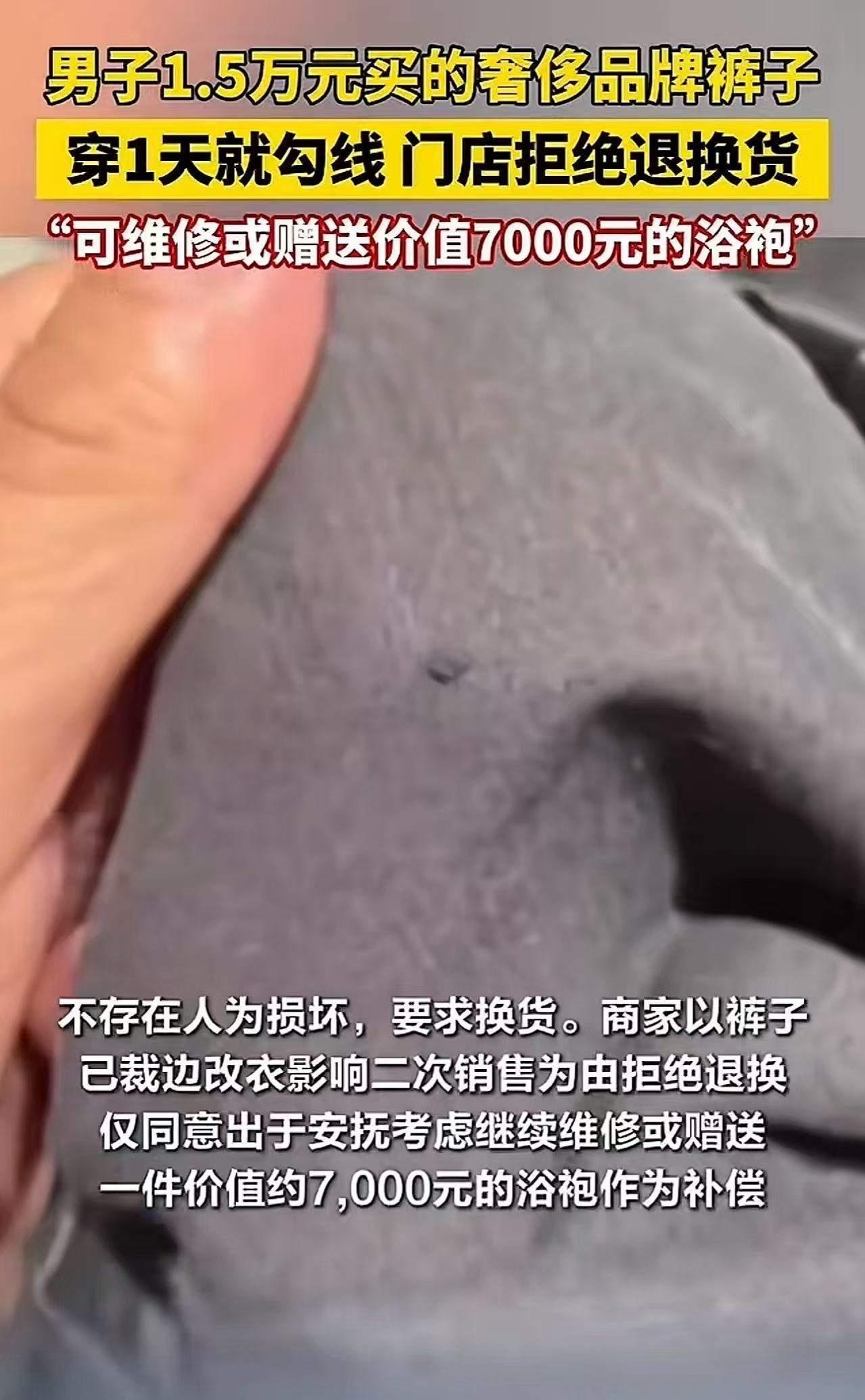 专坑有钱人?陕西西安,男子花1.5万买的裤子,才穿1天就勾线了,他要求商家退换货,却遭拒绝。男子:“15000的裤子就这样的质量?”店家:“不存在质量问题,可接受第三方质检!”网友:我15块买的裤子也不会一天勾线啊! 这到底是“奢侈品”的光环,还是商家无良的遮羞布?一条裤子,15000元的天价,竟然穿一天就露出“真相”,让人不得不怀疑,这背后的“高价”究竟买的是什么?是品牌?是质量?还是商家的“套路”? 想想那些一掷千金买名牌的人,他们不是在买一件衣服,而是在买一种身份感和尊严感。但当这种尊严被一条勾线裤子无情撕裂,消费者的心情该有多糟?更让人气愤的是,面对质疑,商家竟然态度强硬,坚称“无质量问题”,只愿意接受第三方质检——这无疑是把责任推得一干二净,让消费者陷入维权的漫长战斗。 网友的吐槽一针见血:“我15块买的裤子也不会一天勾线啊!”这不仅是对奢侈品质量的质疑,更是对整个消费生态的讽刺。我们是否真的在为品牌买单,还是在为虚假的“高价”买单?这背后反映的,是当下社会消费观念的扭曲和品牌监管的缺失。 更值得深思的是,这样的事件频频发生,难道消费者就只能无奈接受?我们是不是应该重新审视,什么才是真正的“价值”?是价格标签上的数字,还是产品本身的品质和服务?一条裤子穿一天就勾线,背后暴露的是商家对消费者权益的漠视和对品牌信誉的践踏。 这起事件也提醒每一个消费者:买东西,不仅要看品牌,更要看品质和售后。我们要学会用理性的眼光去辨别,不被光鲜的标签迷惑。更希望相关部门能够加强监管,保护消费者的合法权益,让“奢侈品”不再成为坑人的代名词。 看到这里,你是否也有过类似的遭遇?或者你身边有没有被“高价低质”坑过的朋友?欢迎留言吐槽,让我们一起揭开“奢侈品”的真面目,守护属于每个人的消费尊严!裤子质量问题 买裤子避坑 裤子价格