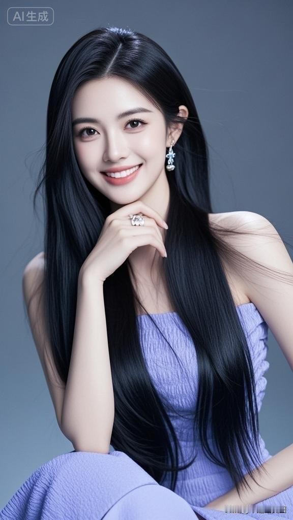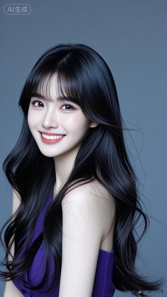甜美笑容,黑发飘逸,AI生成的完美形象!