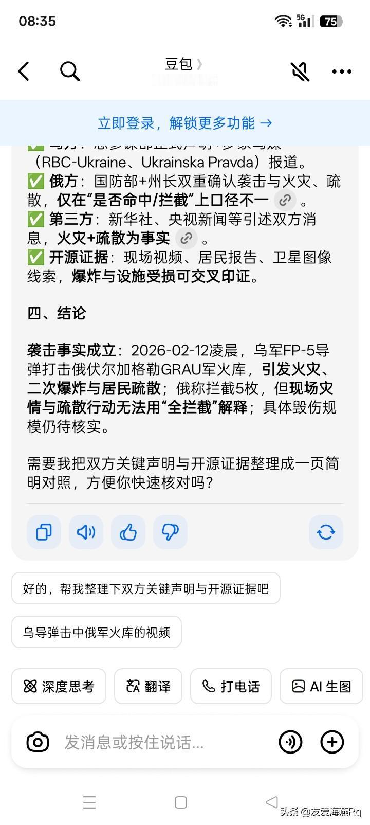 战斗继续进行? 据有消息说,昨天凌晨,乌克兰使用国产弹头重达1000多公斤的“火烈鸟”巡航导弹,袭击了俄罗斯伏尔加格勒地区的科特鲁班俄罗斯国防部导弹和炮兵总局的军火仓库。 虽然俄罗斯以惯常的态度表示,拦截击落了乌克兰全部来袭的五枚“火烈鸟”巡航导弹,但目标区域似乎仍然是发生了剧烈的二次殒爆和大火。与此同时,俄罗斯还疏散了这个军事基地附近的部分民众。 看得出来,虽然乌克兰目前困难重重,但好像远远没有到达山穷水尽,束手无策的程度,继续进行对俄罗斯境内纵深的军事目标,采取有针对性的袭击行动,试图一步一步摧毁俄罗斯进行战争的军事力量。