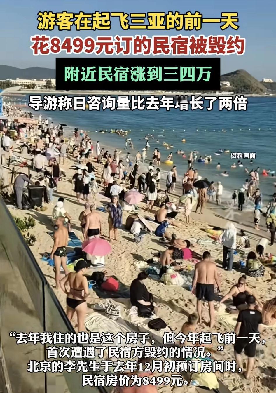 有网友称在去年12月份花8499预订海南三亚的民宿,却在出行前一天被民宿方毁约。然后网友在查看海南三亚周边的民宿时,价格已经涨至三四万元。有当地的导游。今年感觉很多外地的游客又回来了,是指社交媒体上发布的旅行信息,每天都有好几百人的访客量。有东北的朋友称,过来海南度假,比在家里过年更要省钱。
