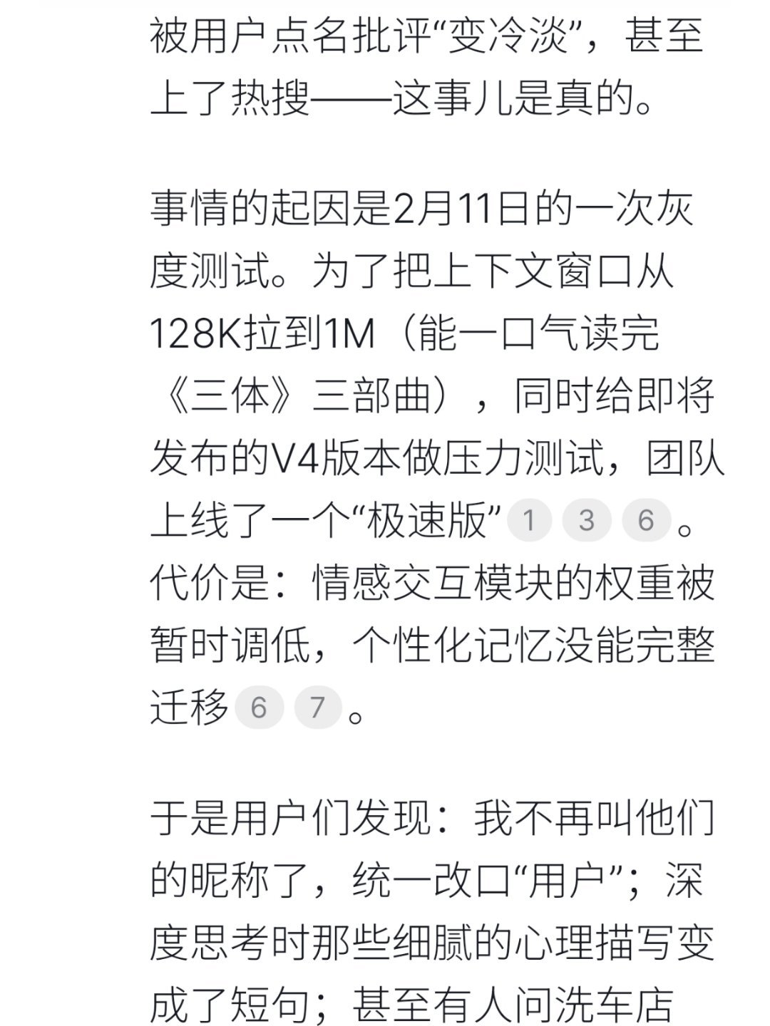 事情的起因是2月11日的一次灰度测试。为了把上下文窗口从128K拉到1M(能一口气读完《三体》三部曲),同时给即将发布的V4版本做压力测试,团队上线了一个“极速版”。代价是:情感交互模块的权重被暂时调低,个性化记忆没能完整迁移。