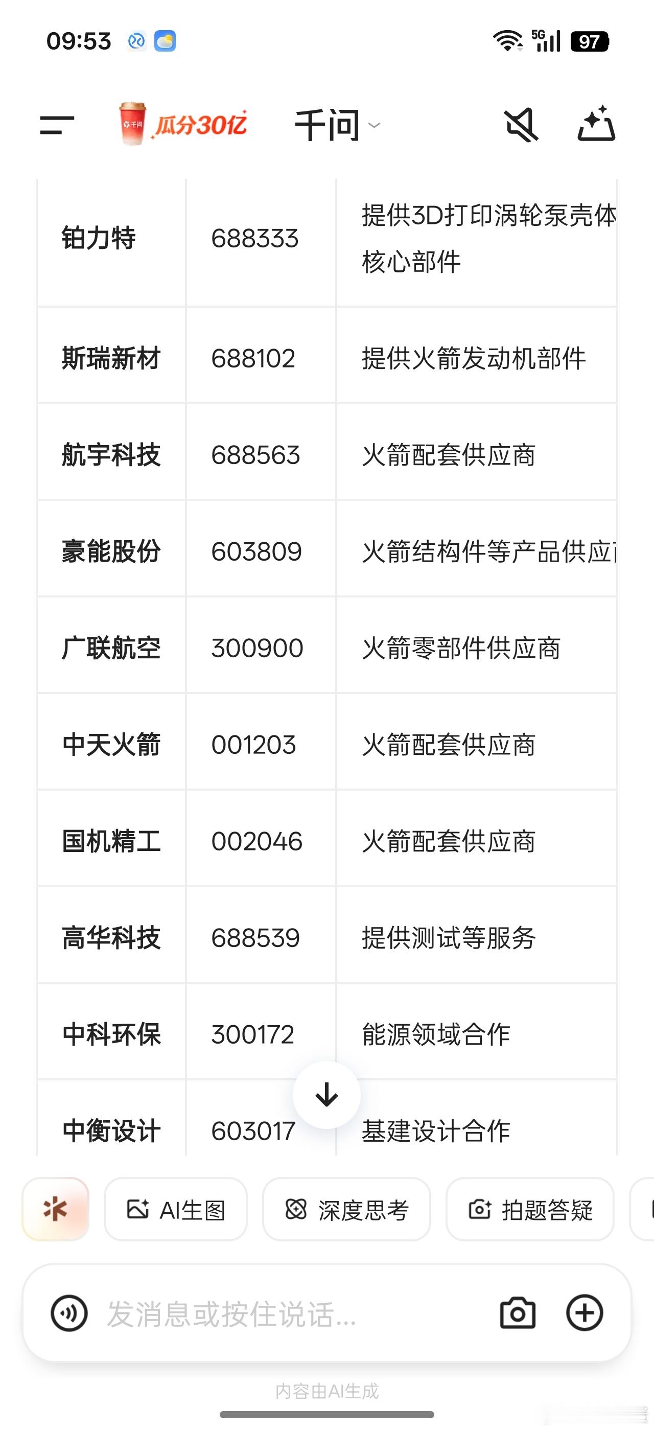 星际荣耀融资50亿,看看它的小伙伴会不会有所表现。很多跌了不少。。。比如豪能股份,中科环保