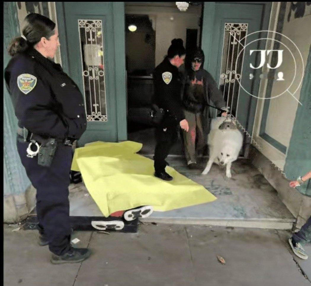 美国加州,旧金山田德隆区,一栋公寓门口,早上起来,人们又发现了一具冻死的尸体。 这死冷寒天的,冻死一个两个人很正常的,美国人不会像没有见识的中国人一样大惊小怪,更没有人上网骂政府和骂市长。 美国警察都很敬业,这么寒冷的时节仍然会正常出警,一大清早就跑来接收尸体了,他们有人可能还没来得及吃早饭。 只能接收完尸体回去再点一杯咖啡了,瑞幸咖啡开新店了,还可以领“鸡蛋”。 警察们熟练工作着,居民们淡定地出门,大家互致早安,有的居然还牵着自己的狗狗,它们从温暖的房子里出来,伸着懒腰。 美好的一天就这样开始了。