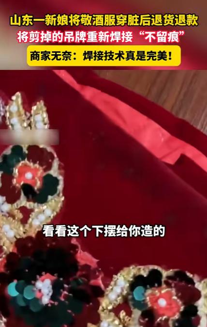 近日,安徽一商家收到一女子婚礼敬酒服退货退款,旗袍下摆脏的全是泥点,吊牌是粘上的,就这么给退回来了。 最近安徽一位专做婚庆礼服生意的老板,在日常拆收退货快递的过程里,直接被眼前的一幕惊得哭笑不得。 这段实拍的验货视频传到网上后,瞬间引发了大批网友和电商从业者的热烈讨论,不少做服装生意的网友看完都直呼,这不就是自己日常最怕碰到的糟心事嘛。 这位商家在电商平台经营婚庆服饰多年,主打新娘敬酒服、伴娘礼服这类喜庆穿搭,平日里靠着靠谱的款式和实在的服务,积攒了不少回头客。 对于平台的七天无理由退换货规则,商家一直都全力配合,只要客户收到的衣服未上身穿着、吊牌完整无损、没有任何污渍磨损,不影响二次销售。 不管是尺码不合适还是款式不满意,商家都会爽快办理退货退款,从不会故意刁难任何一位顾客,毕竟小本生意靠的就是口碑和信任。 可这次收到的退货包裹,却彻底刷新了商家的从业认知,快递包裹外观看着平平无奇,拆开外层包装后,商家就察觉出不对劲,原本发货时配套的防尘袋消失不见,那件大红色的敬酒服,只是被随便塞进了一个普通薄塑料袋里,整体显得格外随意。 商家把旗袍拿在手里,第一时间就感觉到重量和质感不对,全新的敬酒服面料轻盈顺滑,而这件衣服下摆处又沉又硬,展开后更是让人眉头紧锁:整条旗袍的裙摆位置,布满了密密麻麻已经干透的泥点。 深浅不一的泥渍嵌在布料纤维里,还有大片拖拽形成的泥痕,边缘都已经发硬结块。 这款敬酒服用的是婚庆常用的缎面面料,本身就极易吸附污渍,干硬的泥渍就算送专业干洗店反复处理,也会留下难以清除的印记,这件衣服基本等于直接报废,完全没有二次销售的可能。 本以为裙摆的污渍已经足够离谱,可商家检查领口吊牌时,又发现了更刻意的操作。这件衣服的吊牌看似完好挂在原处,和全新衣服的吊牌没有区别。 可常年和自家货品打交道的商家,一眼就看出了破绽:原装吊牌都是专用线绳工整缝制,有清晰的针脚痕迹。 而这个吊牌没有任何缝制痕迹,边缘还残留着淡淡的胶印,是被剪掉后重新用强力胶粘贴上去的,粘贴的手法格外娴熟,几乎做到了不留明显痕迹。 商家对着镜头无奈又调侃地说道,这粘吊牌的手艺也太精湛了,不去学电焊简直可惜,妥妥的电焊专业水平,不仔细查验根本发现不了猫腻。 他还忍不住打趣,我不知道这位姑娘婚礼过得顺不顺心,但能把敬酒服蹭得全是泥点,想必当天走的路肯定算不上好走。 其实在婚庆礼服和女装电商行业里,这类恶意退货的情况并不算少见,有数据显示,礼服类目的非正常退货率,要比普通日常服饰高出不少,很多小商家都曾吃过类似的亏。 有同行分享过相似经历,有新娘把定制婚纱穿完婚礼全程后,剪掉吊牌伪造完好状态申请退货,婚纱裙摆沾满草地污渍和红毯碎屑。 要知道,一件婚庆敬酒服的成本从几十元到上百元不等,一旦被严重弄脏、面料受损,就只能彻底废弃,对于小本经营的商家来说,每一次恶意退货都是实打实的经济损失。 而平台的七天无理由退货,核心前提是商品保持全新、不影响二次销售,并非是可以随意使用后退货的漏洞,恶意使用商品再伪造状态退货,本身就违背了消费诚信的基本原则。 这位商家发现问题后,第一时间保留了完整的开箱验货视频,清晰记录下泥渍、粘胶吊牌等所有细节,同步提交给平台客服申请维权,目前还在等待平台的处理结果。 视频曝光后,网友们也纷纷发表看法,大家普遍认为,正常的退换货无可厚非,可穿着婚礼敬酒服弄脏后,还刻意粘回吊牌试图全额退款,这种投机取巧的行为实在不应该。 不少消费者也表示,结婚本是人生中最喜庆的事,没必要为了一件敬酒服耍小聪明,既损耗了自己的人品,也给商家带来了不必要的损失。 电商消费的便利,离不开商家和消费者之间的相互信任,七天无理由是保障消费者权益的福利,不该被别有用心的人当成占便宜的工具。 商家用心经营货品,消费者理性诚信消费,彼此多一份理解和体谅,才能让消费环境变得更加舒心顺畅,也不用再让这类让人无奈又好笑的荒唐事,频繁出现在大家的视野里。 对于这件事,您有什么想说的吗?欢迎评论区留言讨论。 信源:宁波晚报2026-02-12——《山东一新娘将敬酒服穿脏后退货退款 将剪掉的吊牌重新焊接“不留痕”,商家无奈:焊接技术真是完美》